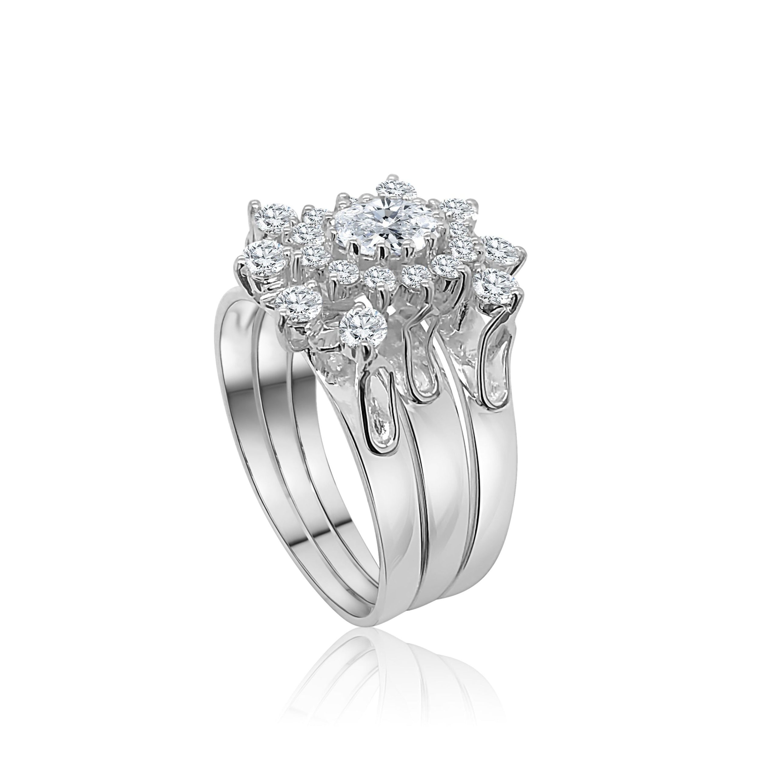 Sterling Silver 3 Piece Cluster Ring Set with Cubic Zirconia & Garnet – S/S-D2053