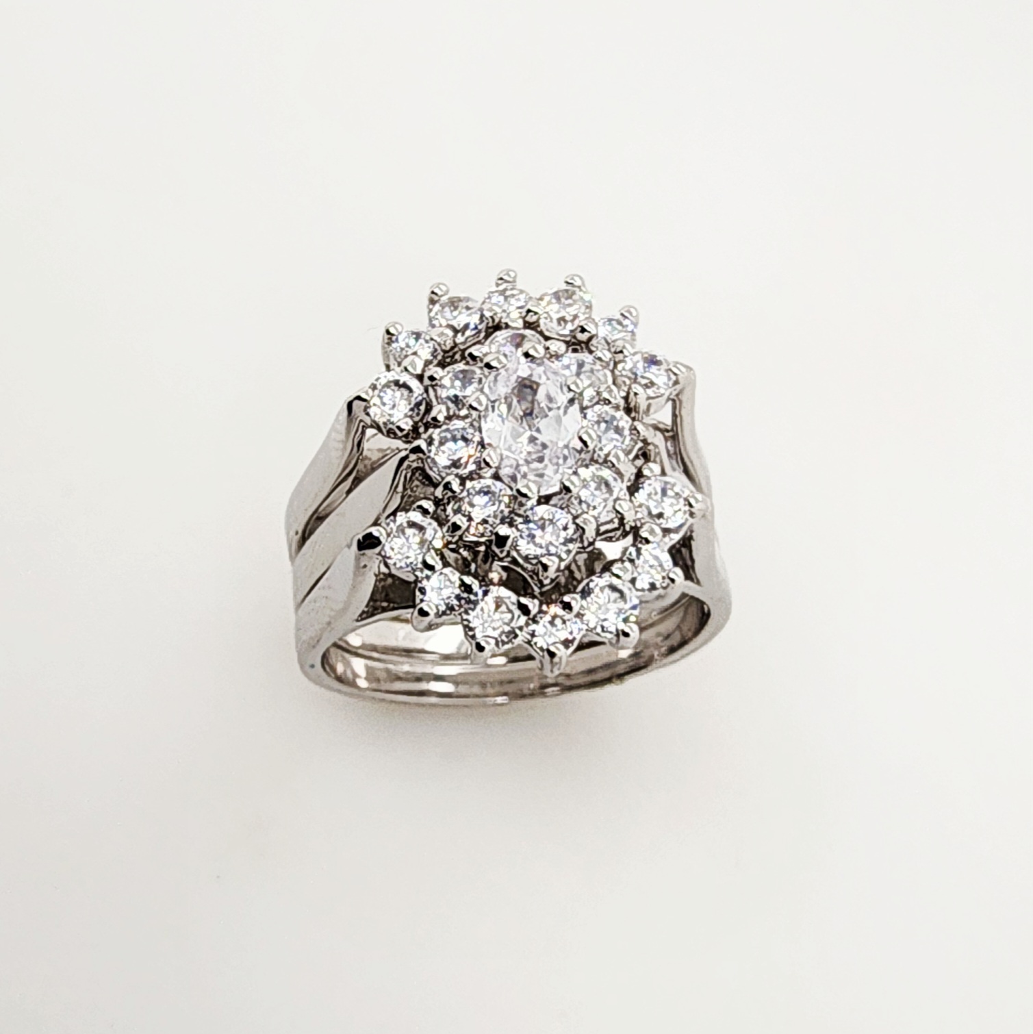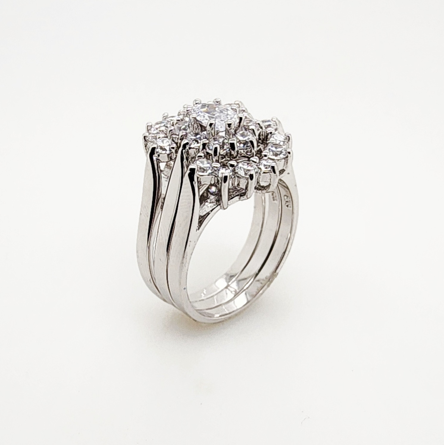 Sterling Silver 3 Piece Cluster Ring Set with White Cubic Zirconia Setting – R005CZWHITE