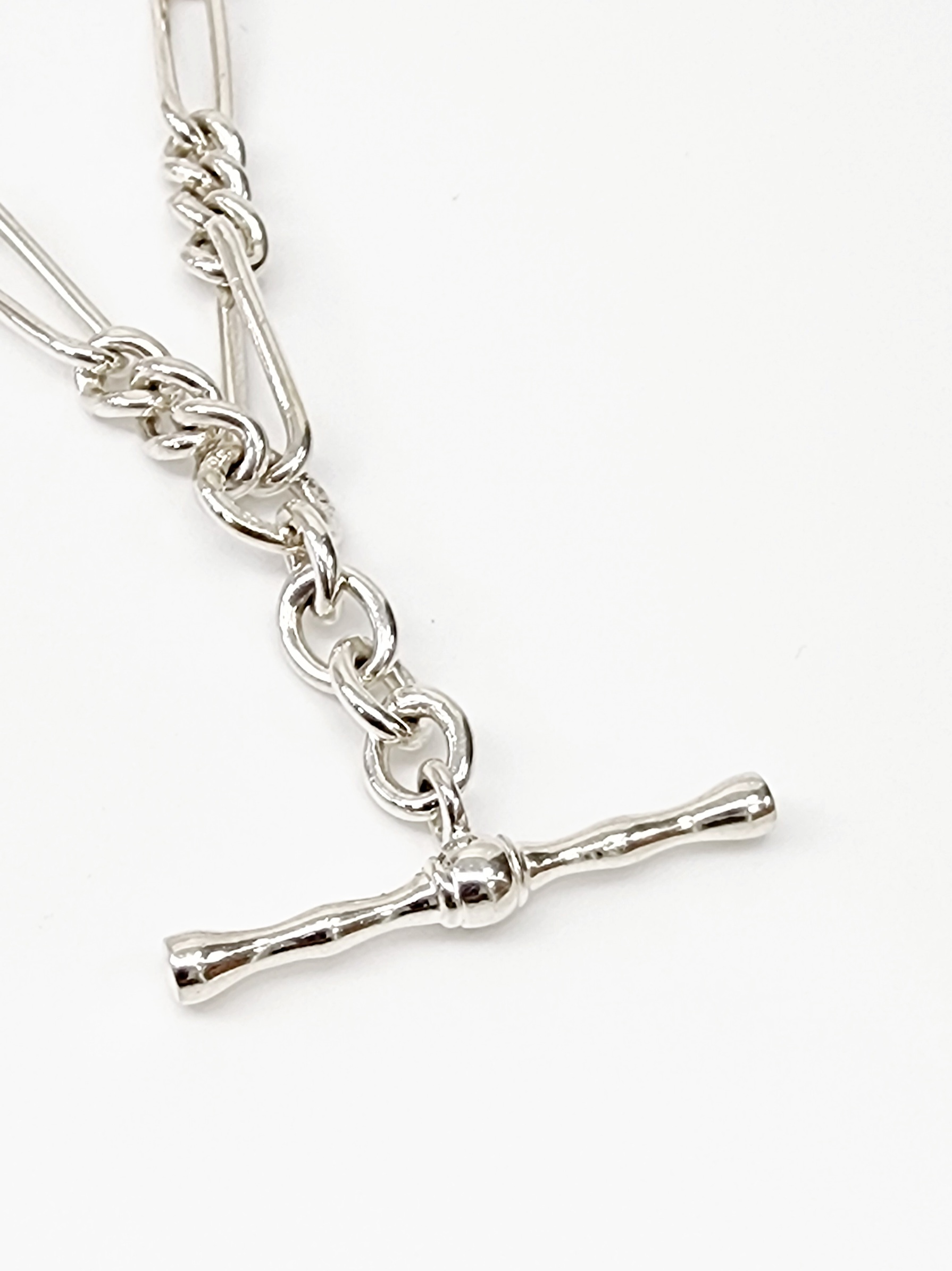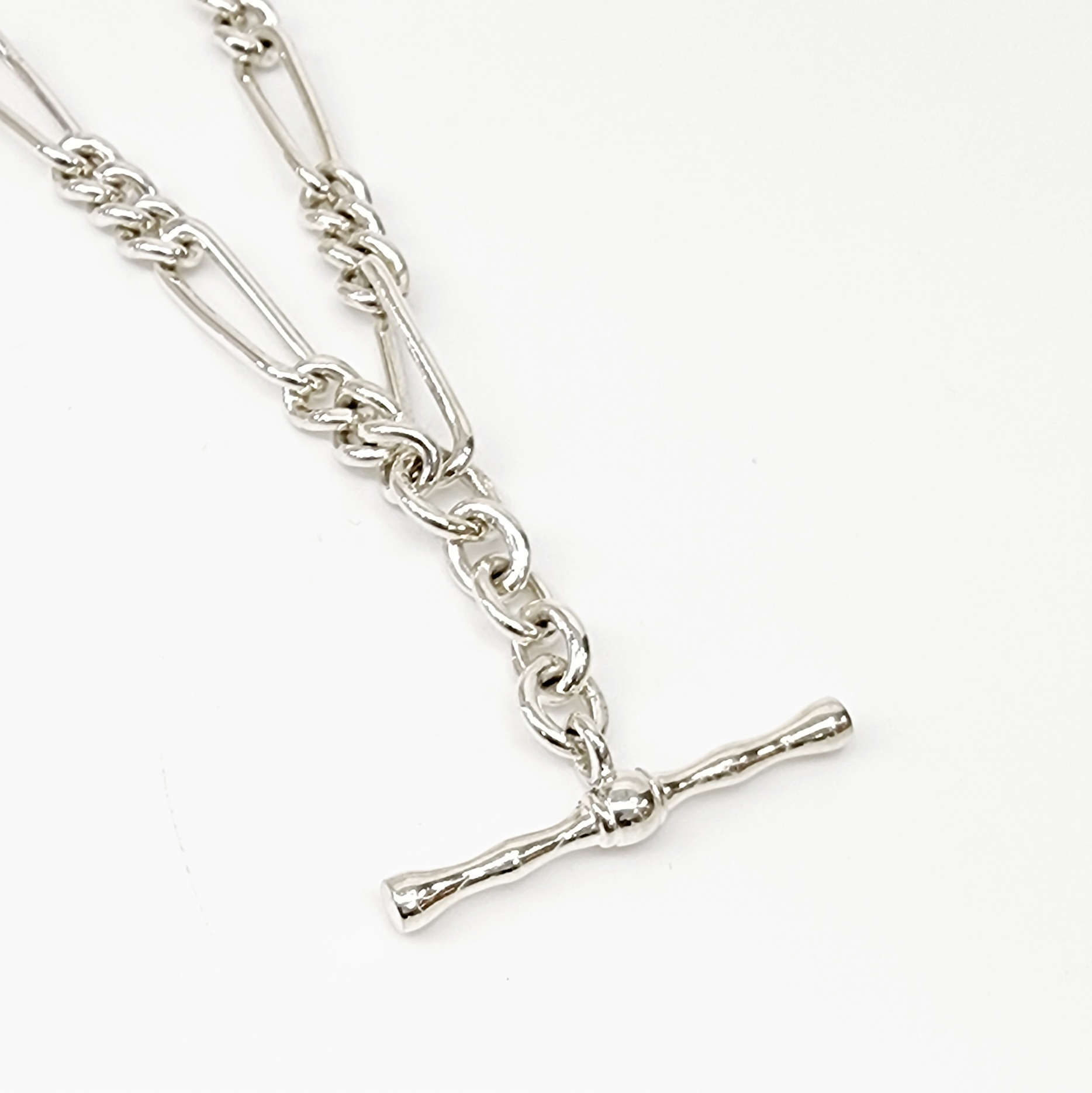 Sterling Silver 55cm Figaro Chain Necklace with T-Bar Pendant – SNK3