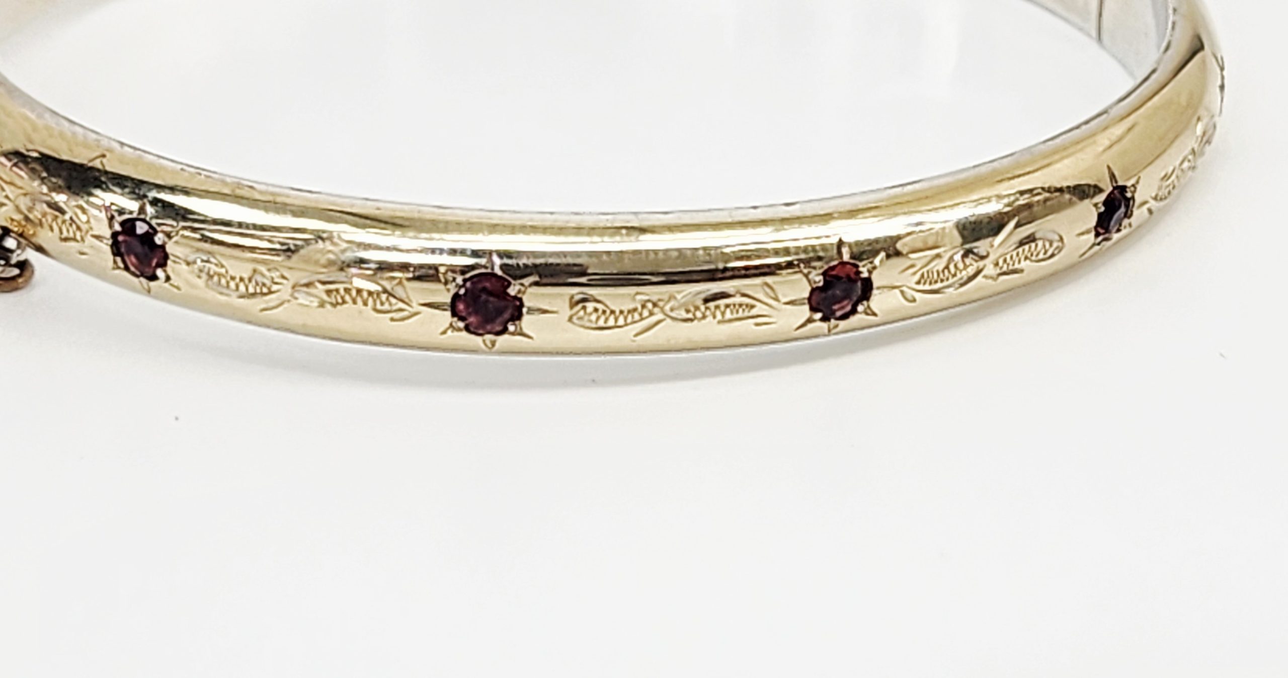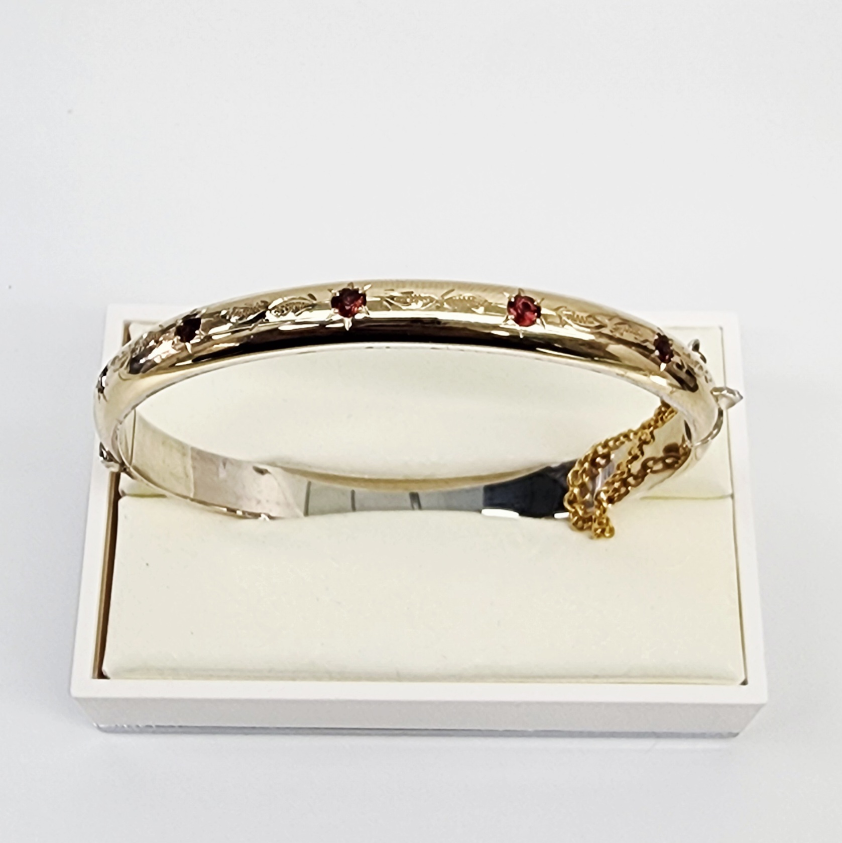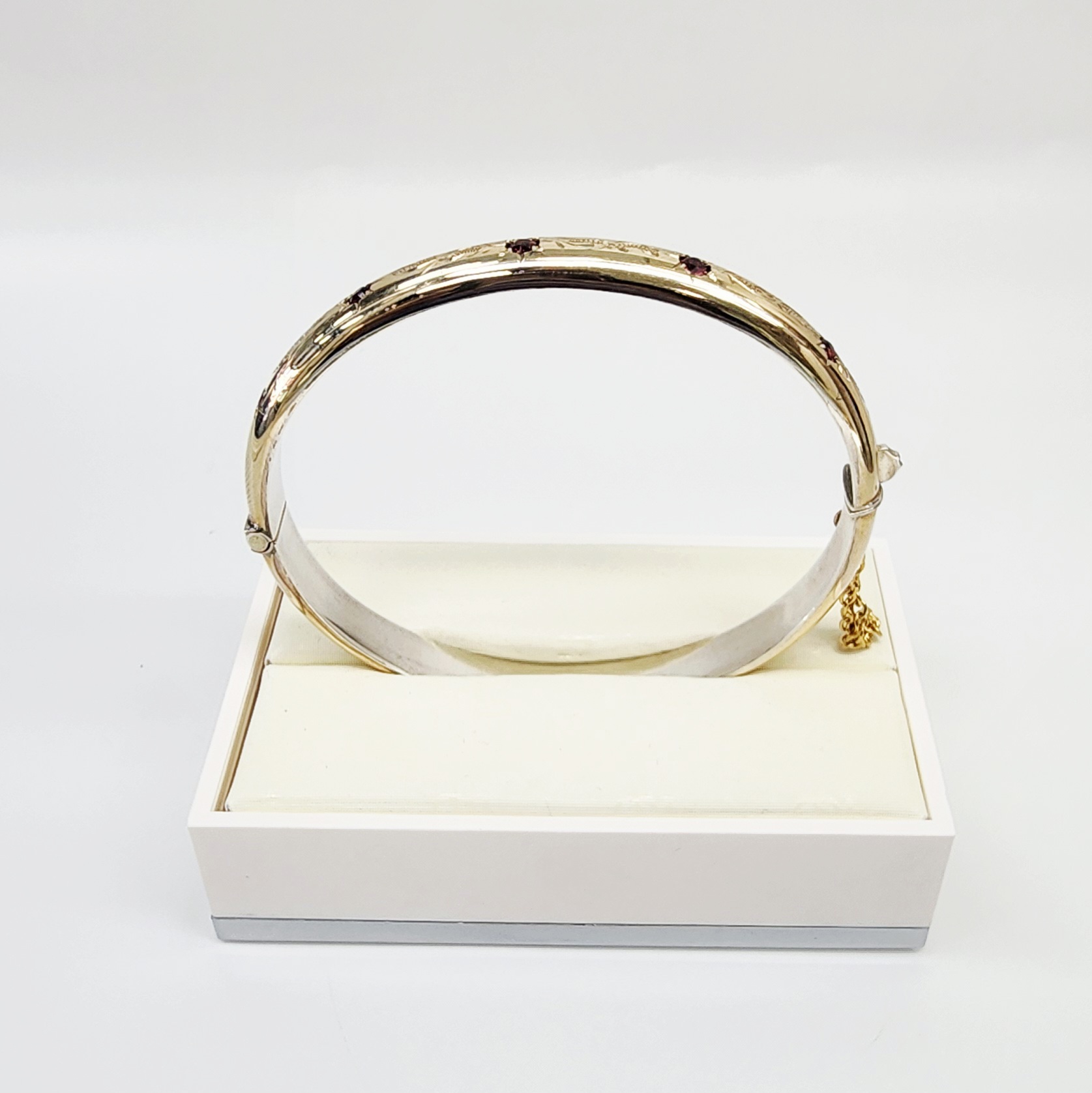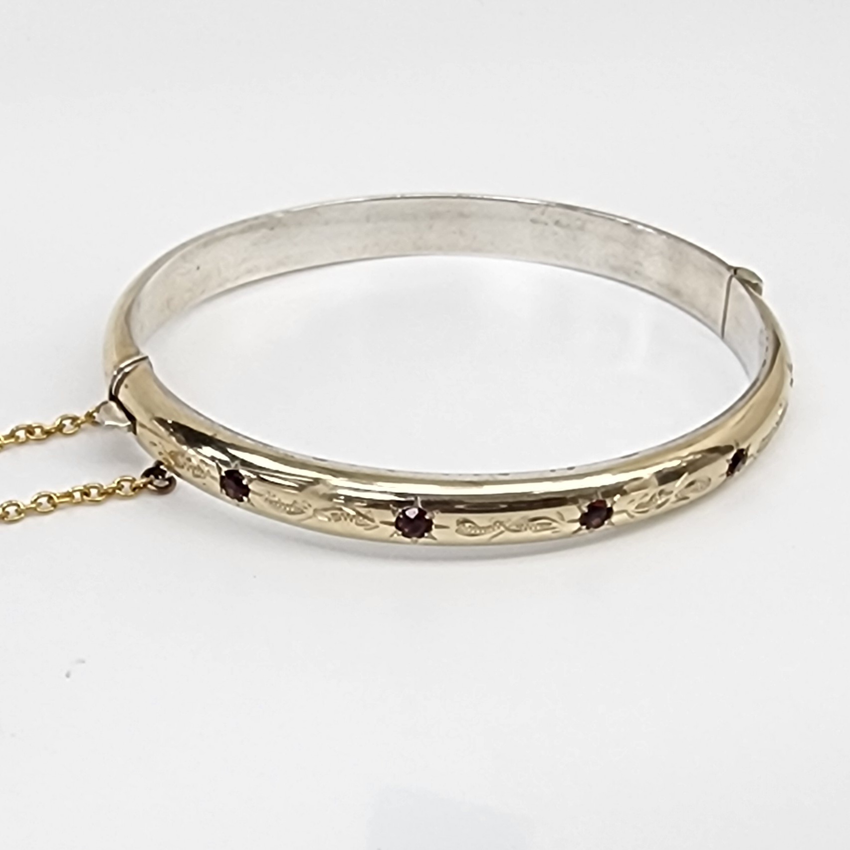 Sterling Silver & 9ct Yellow Gold Engraved Garnet Half Round Bangle – GS2HREN5GAR