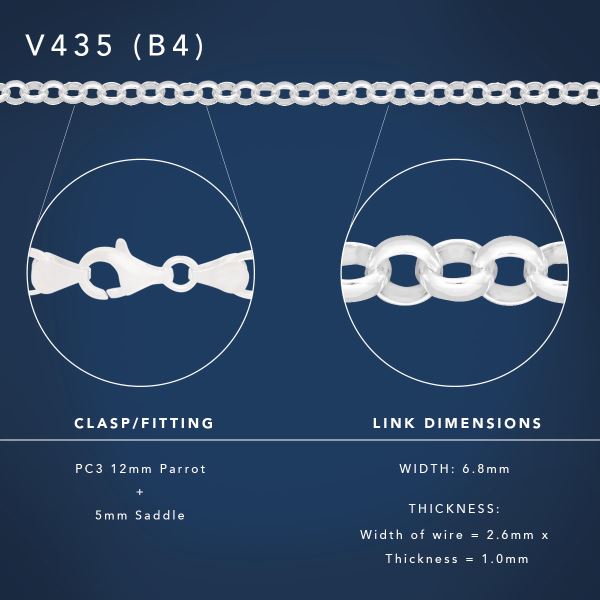 The B4 grade offers a balanced medium strength, making it ideal for wearing on its own or pairing with light to medium pendants, charms, crosses or lockets. The uniform circular links provide excellent flexibility and durability while maintaining a smooth, comfortable feel around the neck.