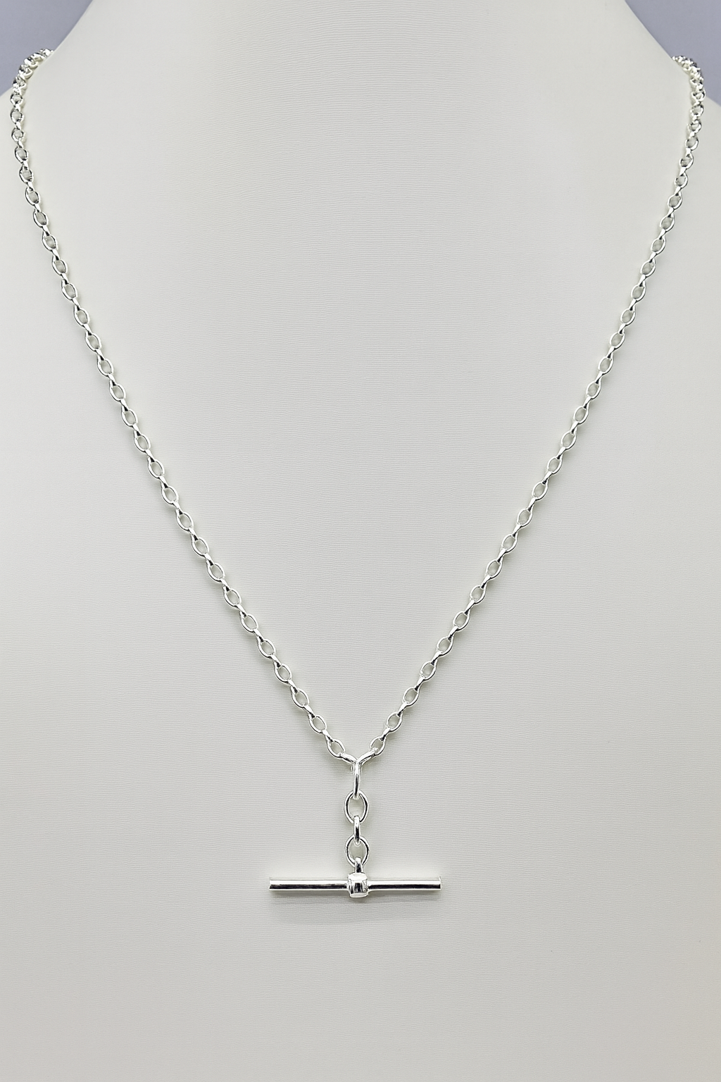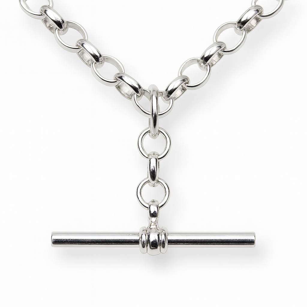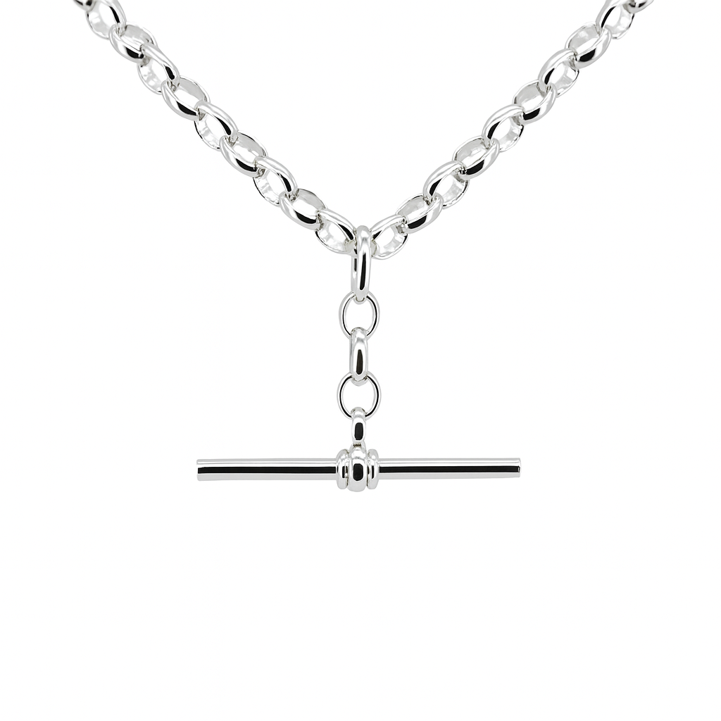 Sterling Silver BO3 Oval Belcher Chain With 35mm Sterling Silver Running T-Bar