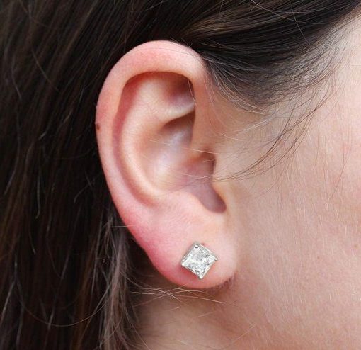 A perfect pair of earrings for any woman! Simple and easy, these earrings are definitely the finishing touch to any outfit, day or night. They feature clear 6mm princess cut cubic zirconias 4 claw set in rhodium plated sterling silver. The earrings are secured with friction backs and push butterfly backings.