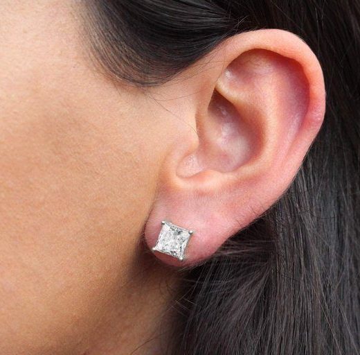 A perfect pair of earrings for any woman! Simple and easy, these earrings are definitely the finishing touch to any outfit, day or night. They feature clear 7mm princess cut cubic zirconias 4 claw set in rhodium plated sterling silver. The earrings are secured with friction backs and push butterfly backings.