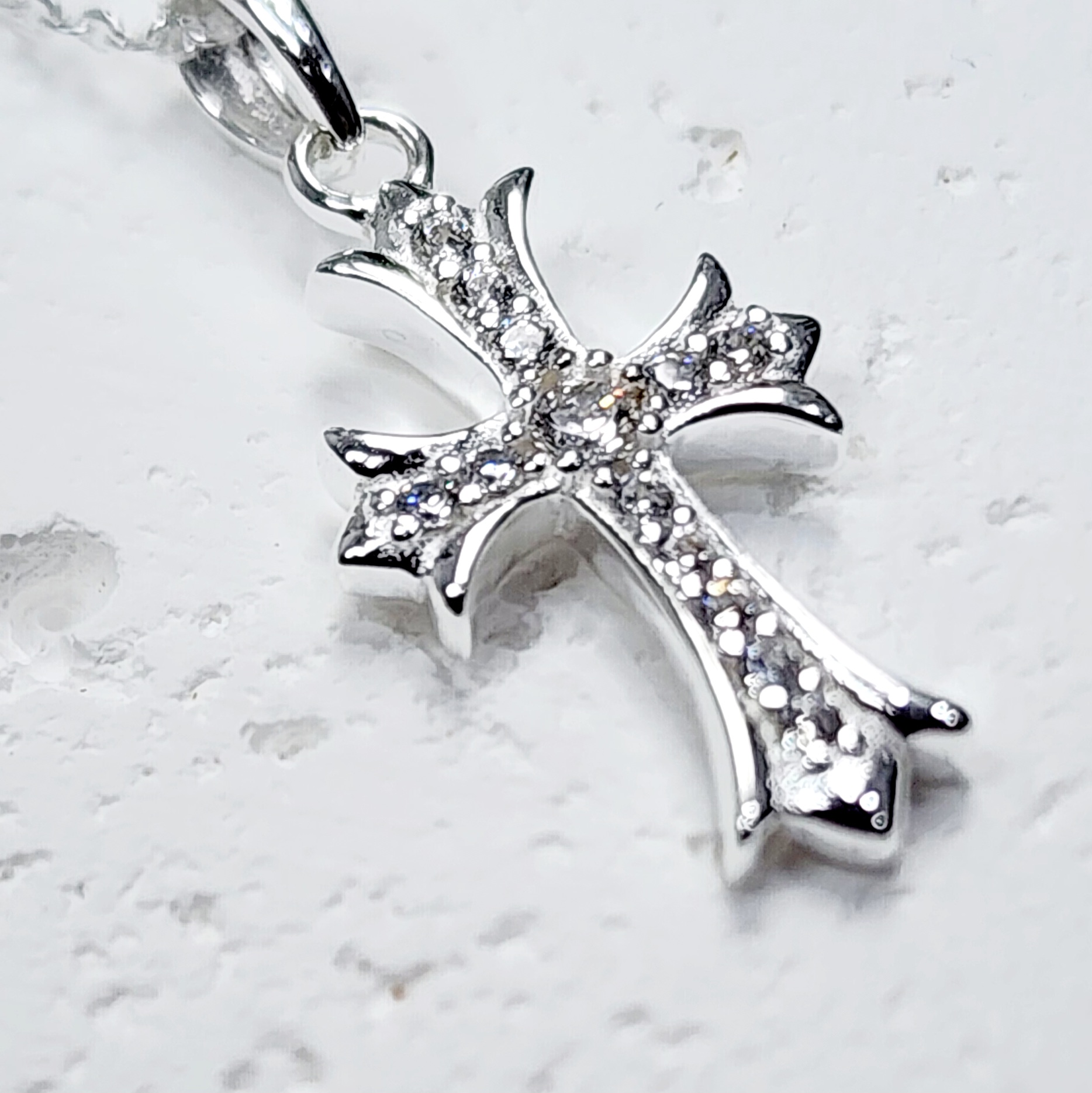 Sterling Silver Cubic Zirconia Set Cross Pendant and Sterling Silver Chain