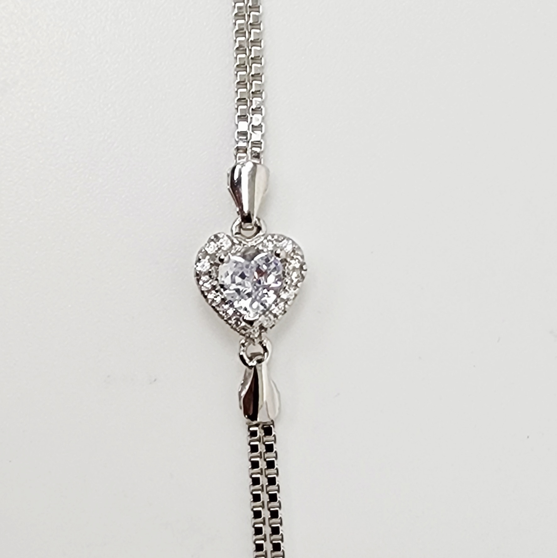 Sterling Silver Heart Shape Cubic Zirconia Set Double Box Chain Link Bracelet 16cm + 3cm – SSCZB04