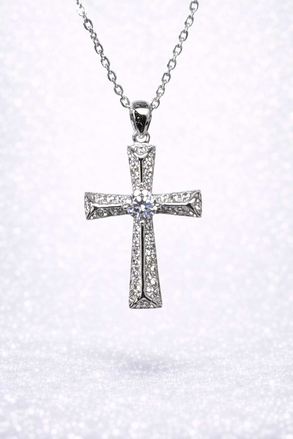 Elegant and symbolic, this sterling silver cross pendant is beautifully designed to combine timeless faith with refined brilliance.