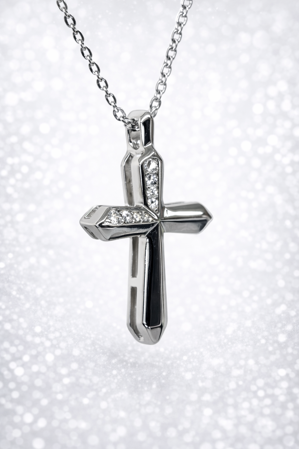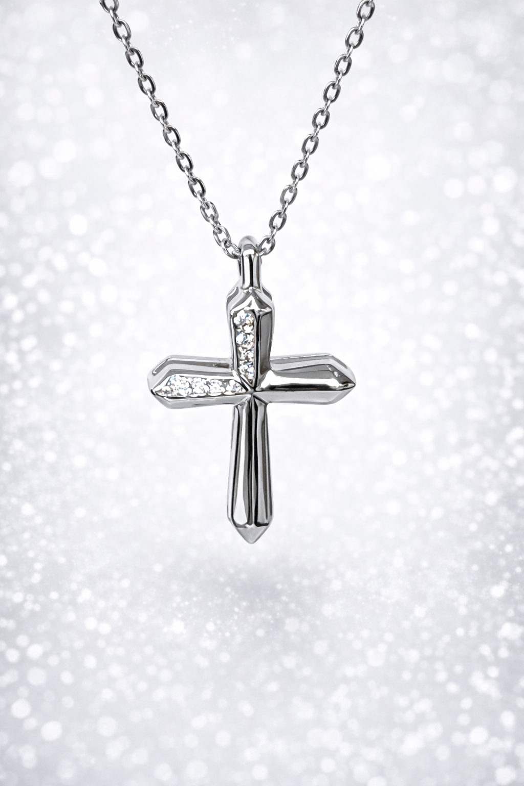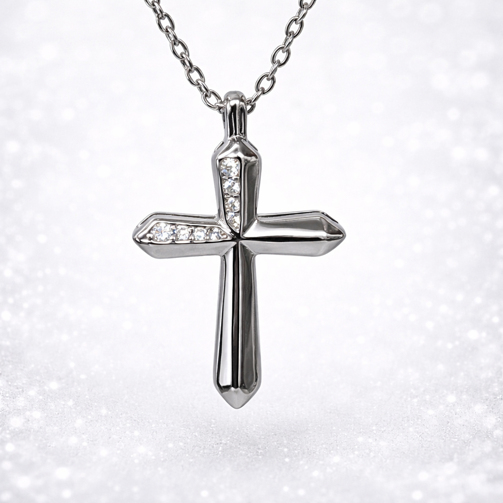Expertly finished in high-polish sterling silver, the cross features a clean, structured silhouette with softly faceted edges that reflect light effortlessly. The design blends contemporary styling with classic meaning, making it a versatile piece suitable for everyday wear or special occasions.