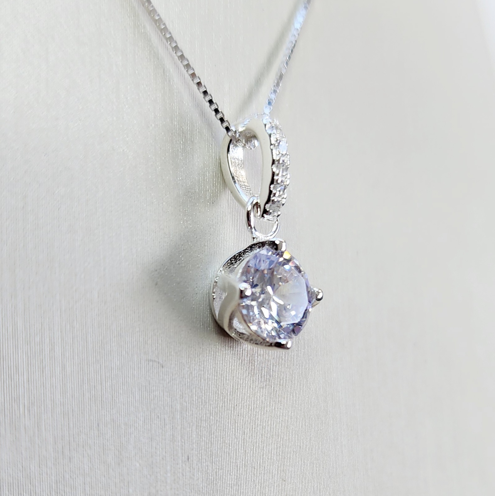 Sterling Silver CZ Drop with Round 4 Claw CZ Pendant and Sterling Silver Chain