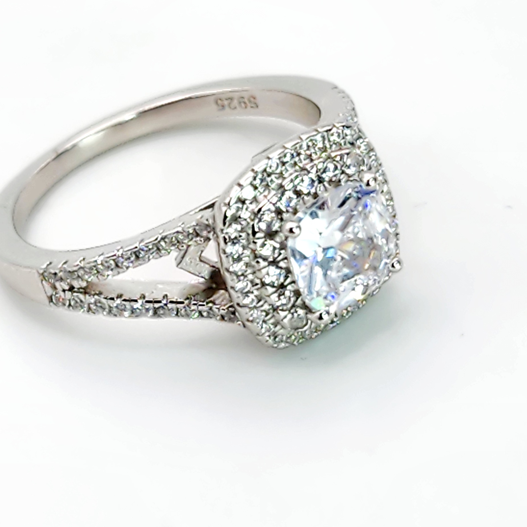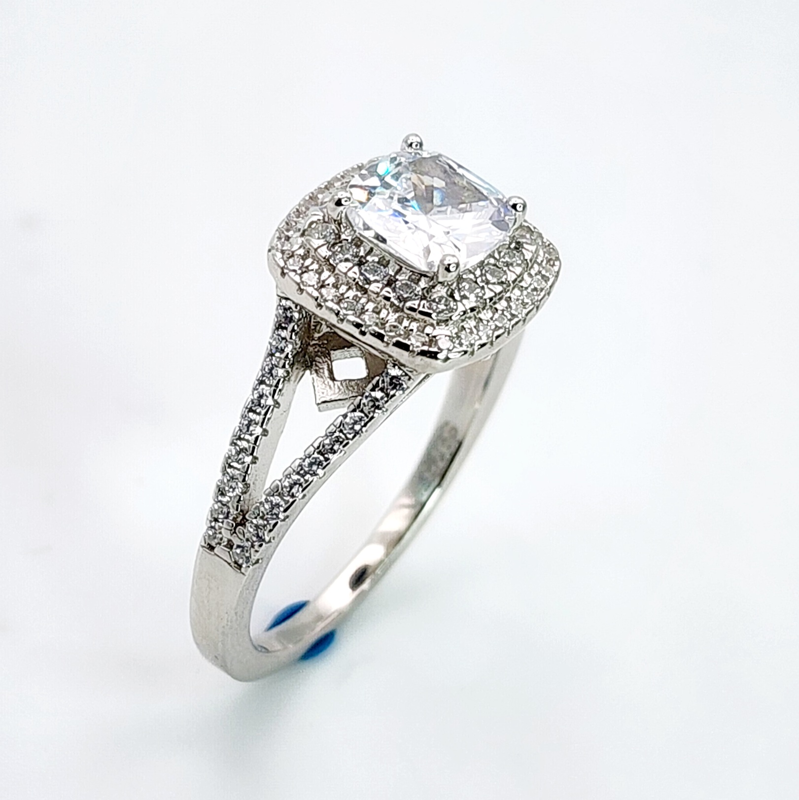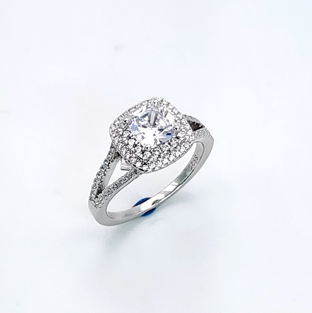 Sterling Silver Double Halo Split Shank Cubic Zirconia Engagement/Dress Ring
