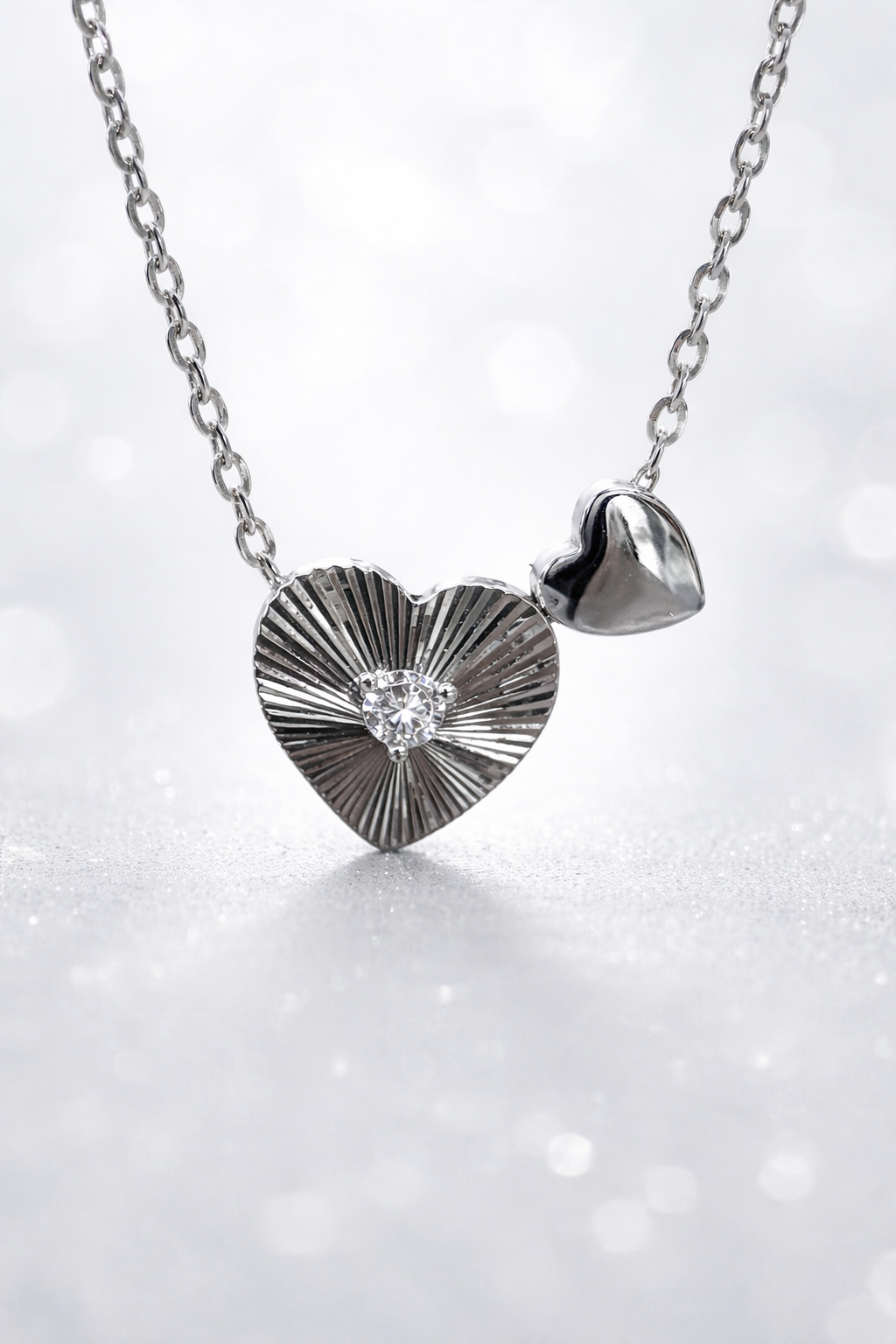 Sterling Silver Double Heart Pendant Necklace with CZ – Diamond Cut & Polished Finish – YL7393101
