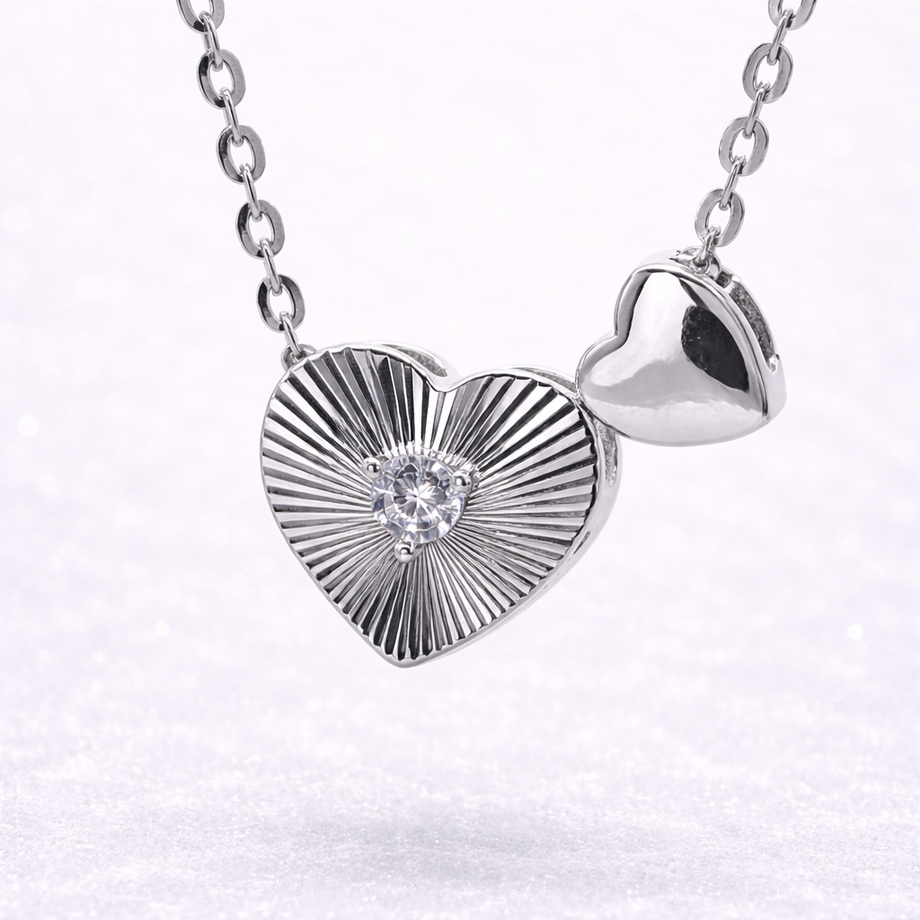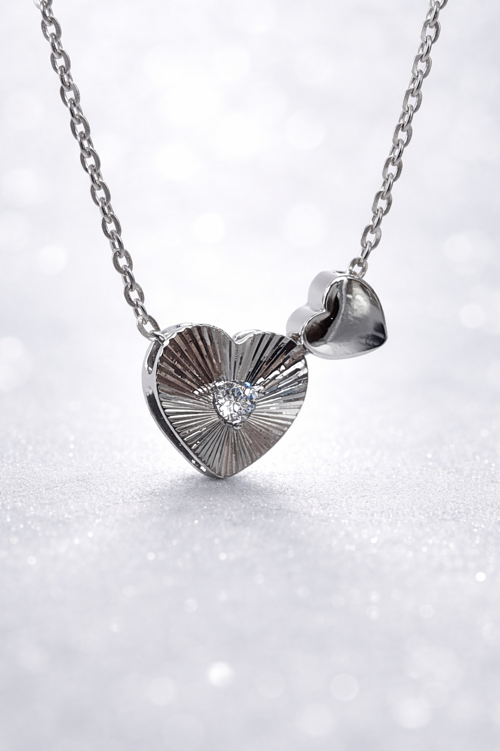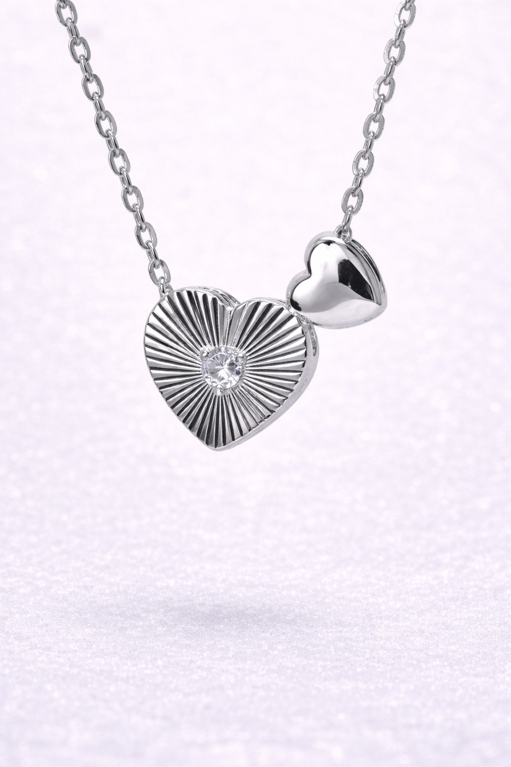Celebrate love and connection with this beautifully crafted sterling silver double heart pendant, designed with movement, elegance, and timeless charm.