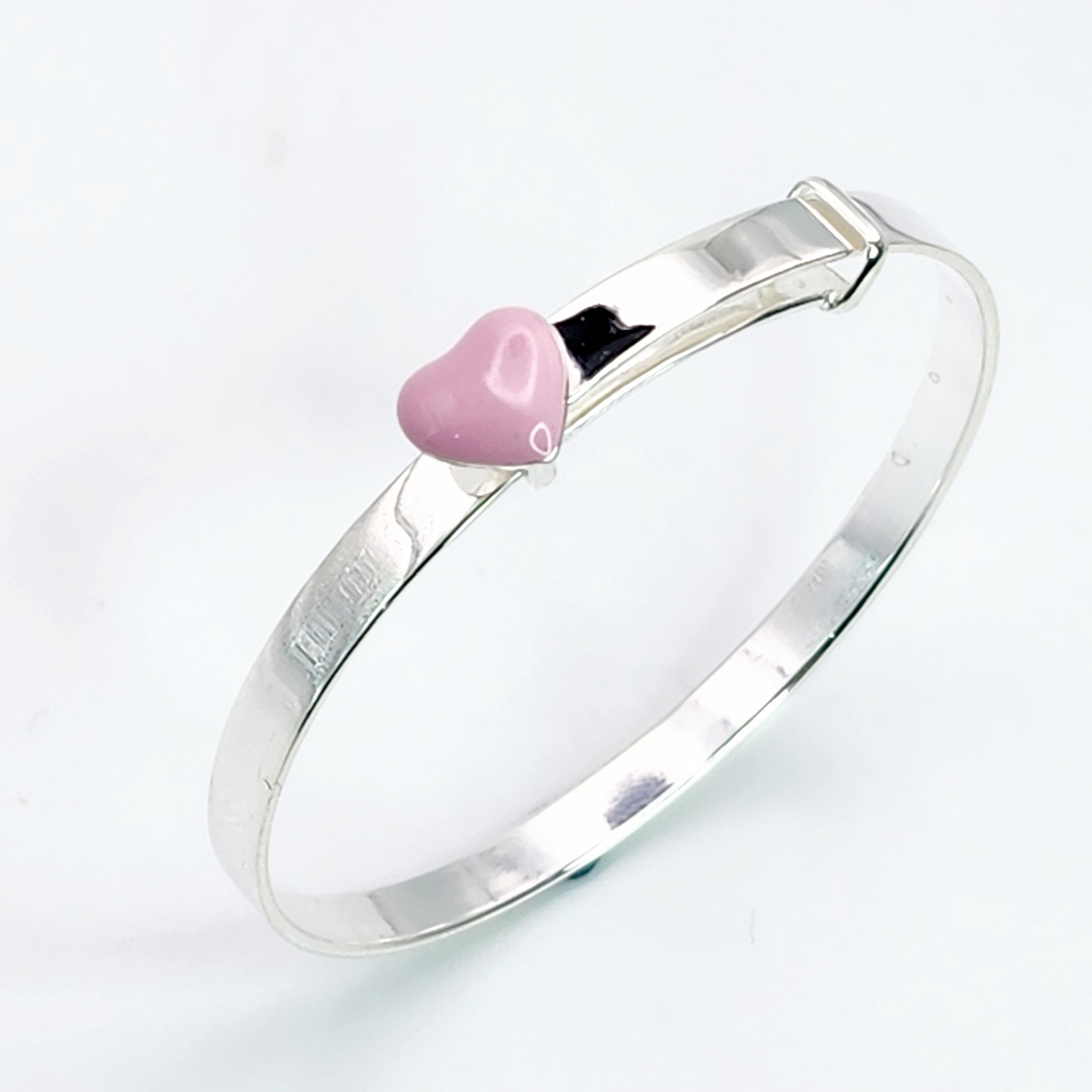 Sterling Silver baby expanding bangle with Pink Heart. The bangle is 47mm without expanding.