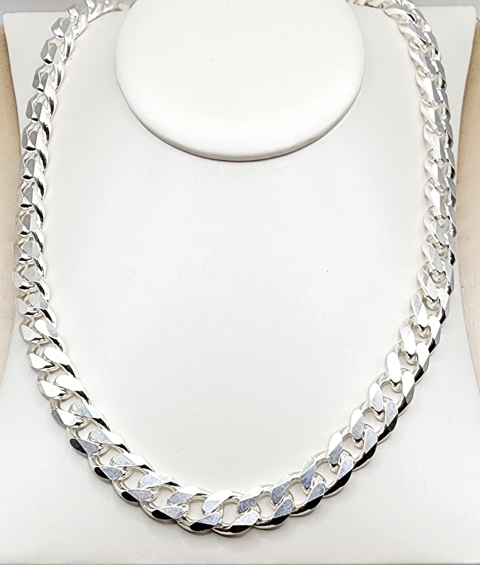 - Chain Style:?Flat Bevelled Diamond Cut Curb Link