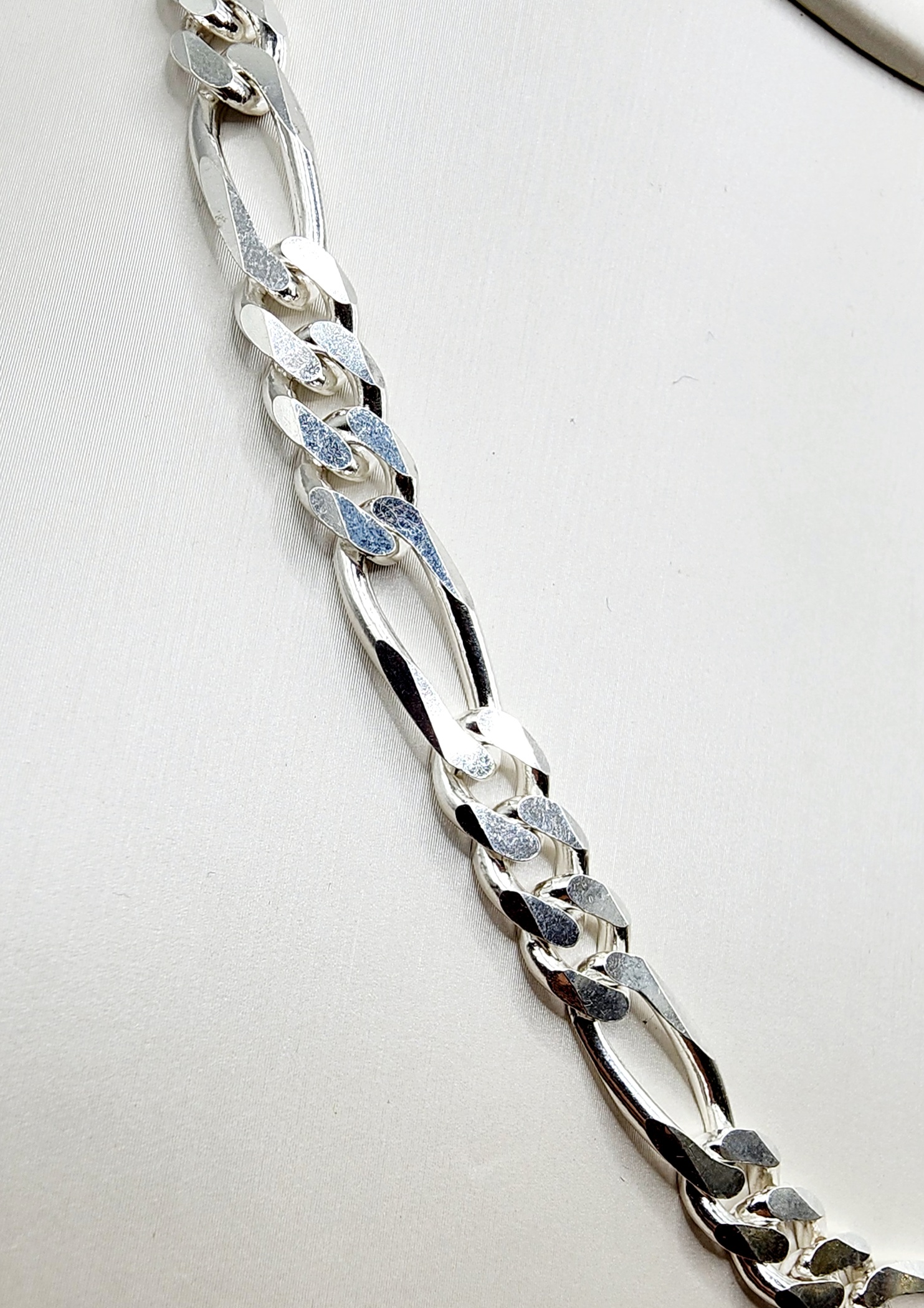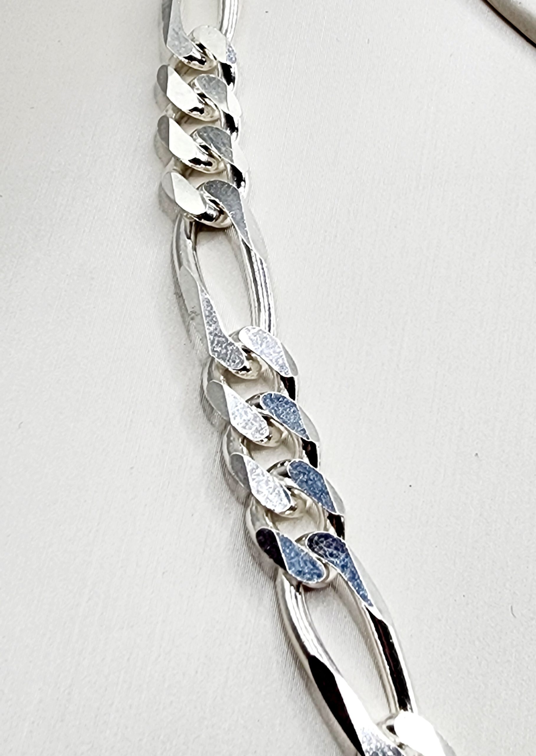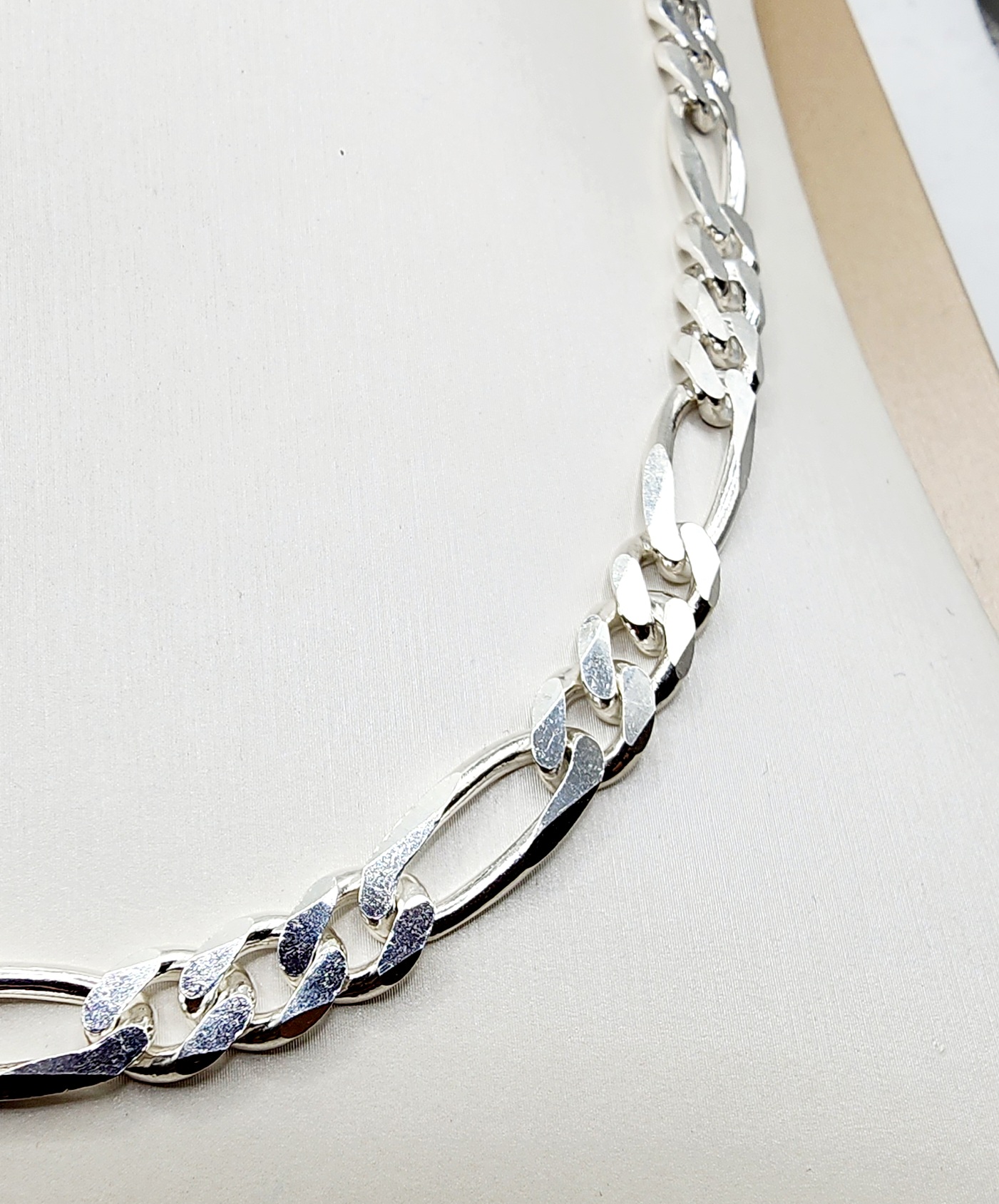 Sterling Silver FBSFD200 Flat Bevelled Diamond Cut Figaro 1/3 Link Chain 60cm Long