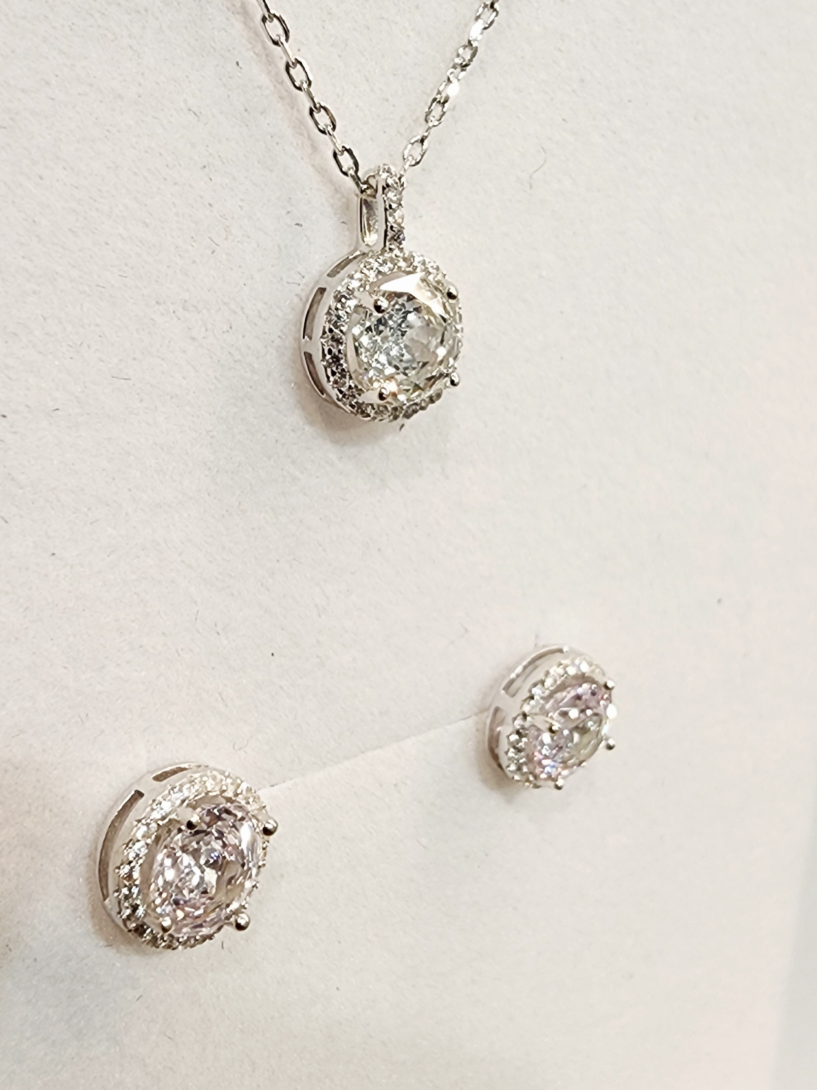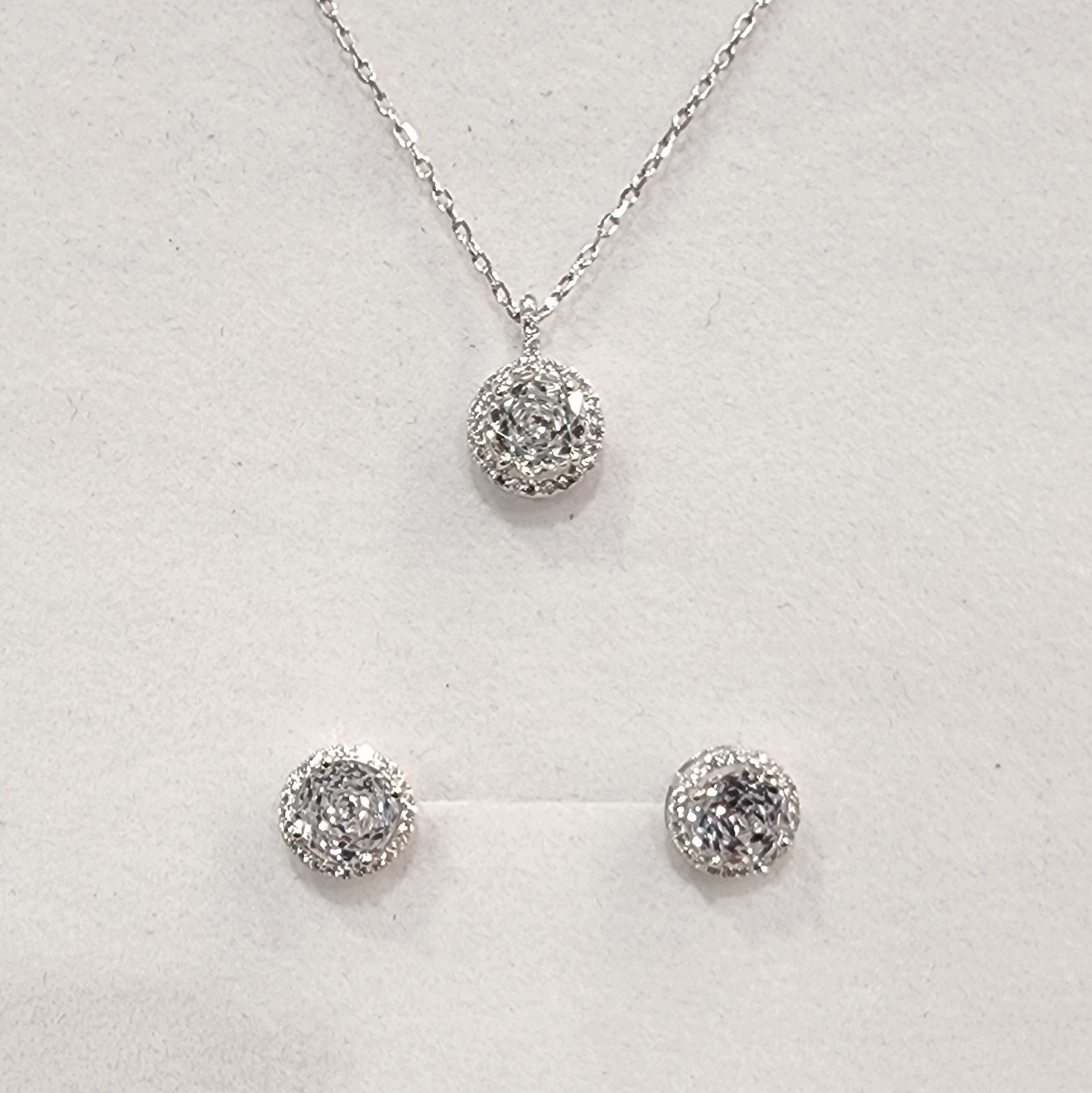 Sterling Silver Halo Setting Pendant & Stud Earrings Set with Cubic Zirconia Setting – SSPESET04