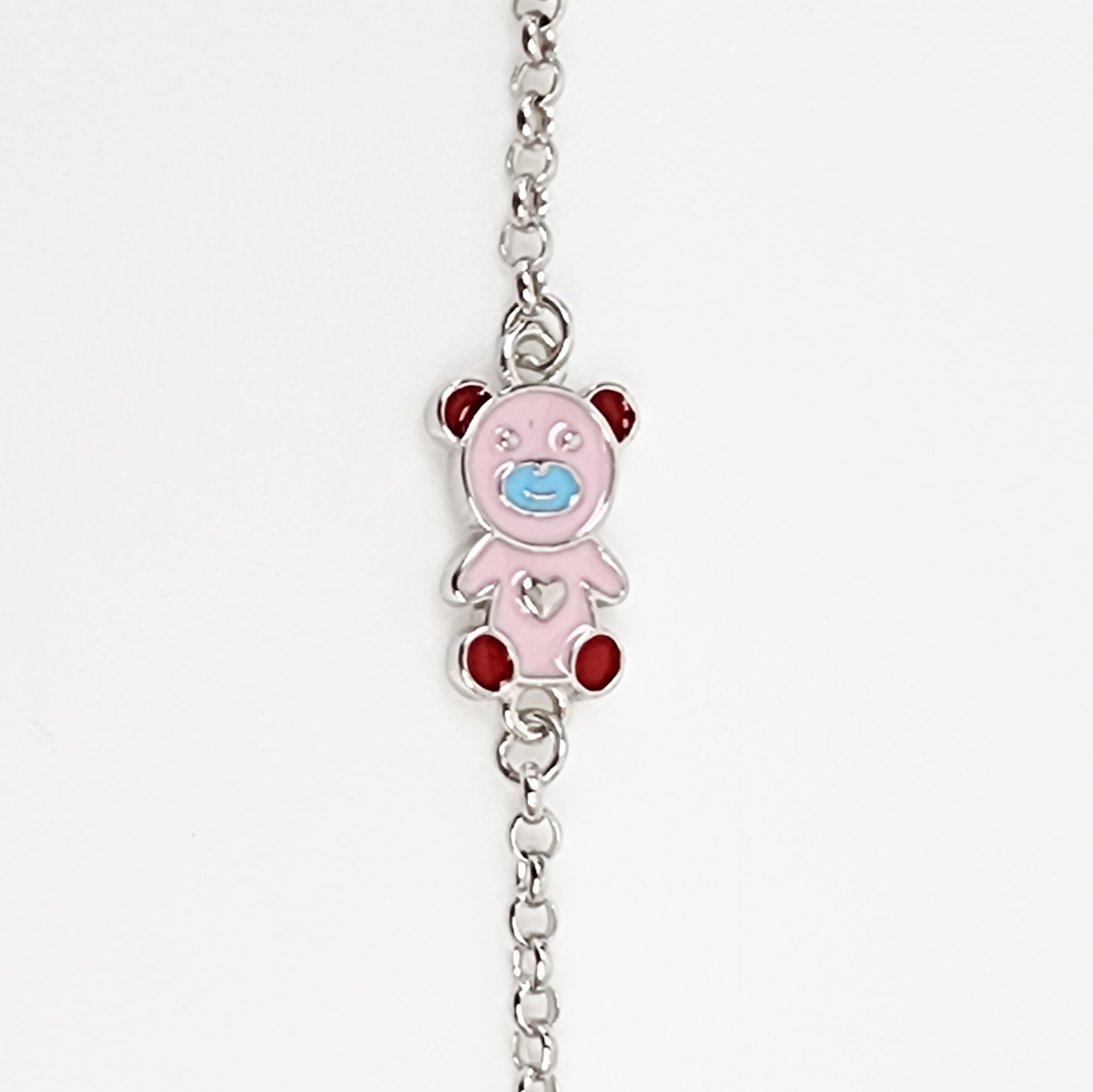 - Teddy Bear Charm: Pink, Red & Blue Enamel