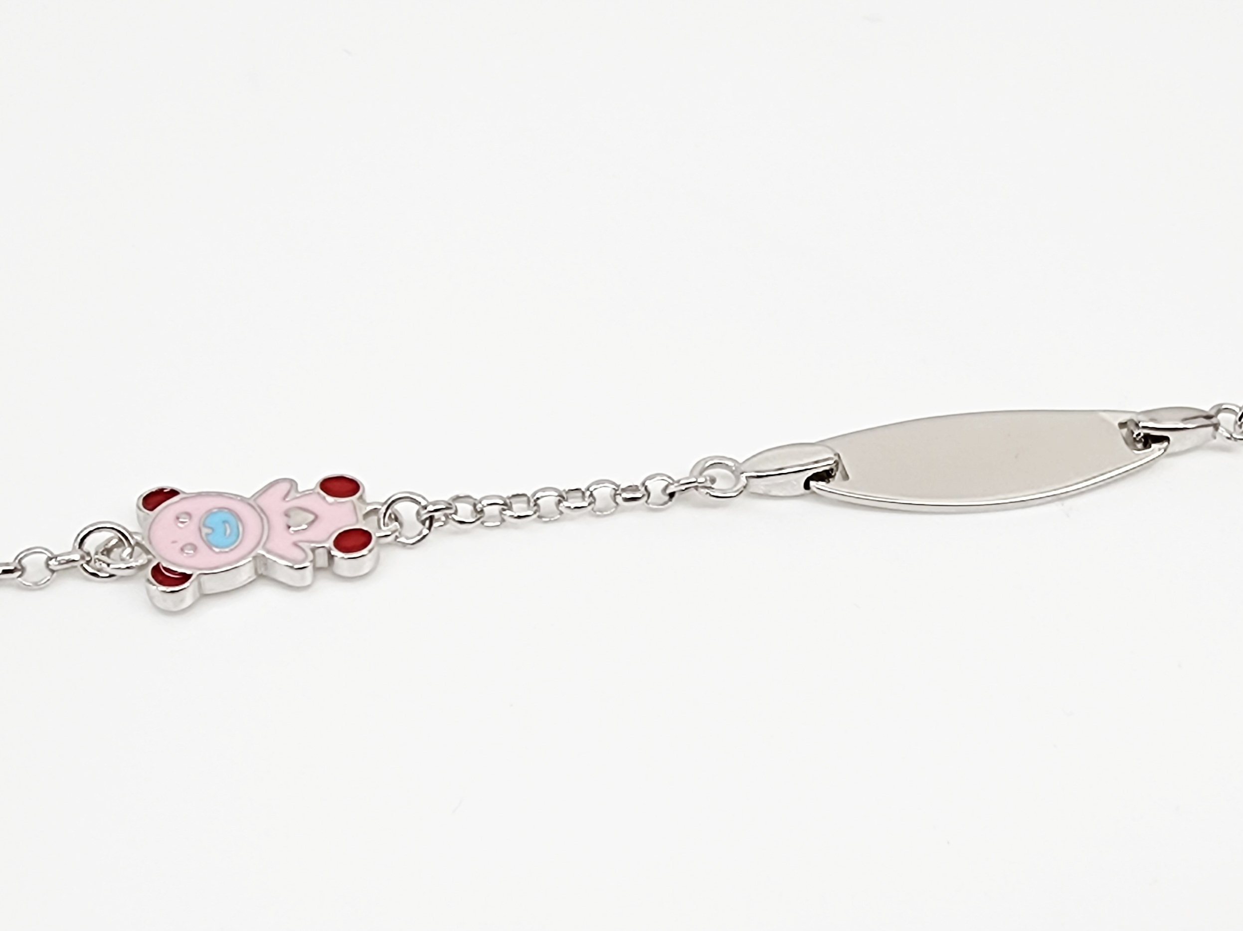 Sterling Silver Kids ID Bracelet with Multicolour Teddy Bear – SSIDKID01