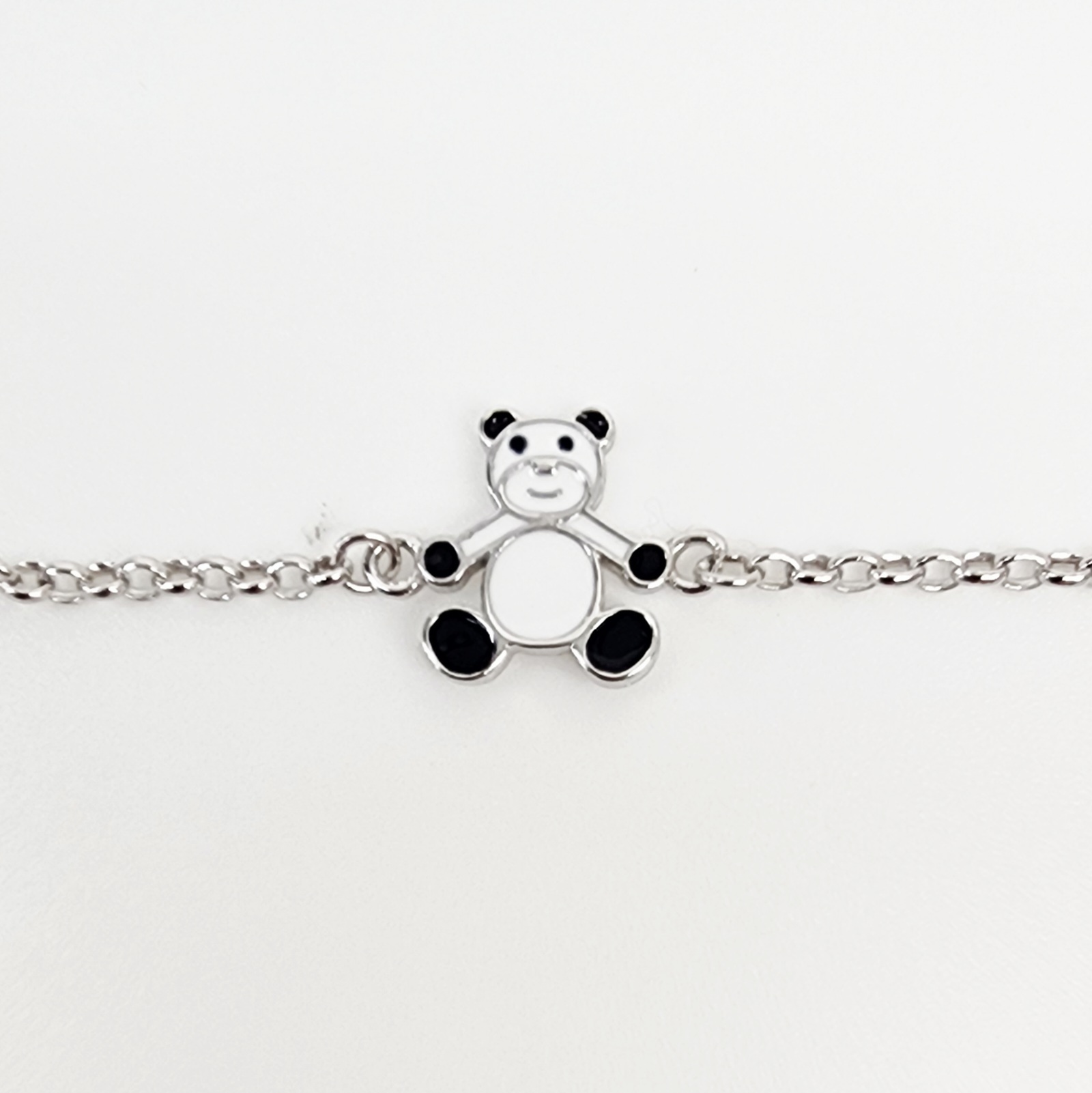This charming children’s ID bracelet is beautifully crafted from 925 sterling silver, making it a timeless keepsake and a perfect gift. The design features a delightful teddy bear charm nestled between the classic belcher links, adding a playful yet elegant touch. The teddy bear is finished with a lovely white and black enamel detail, giving it an adorable, eye-catching look.