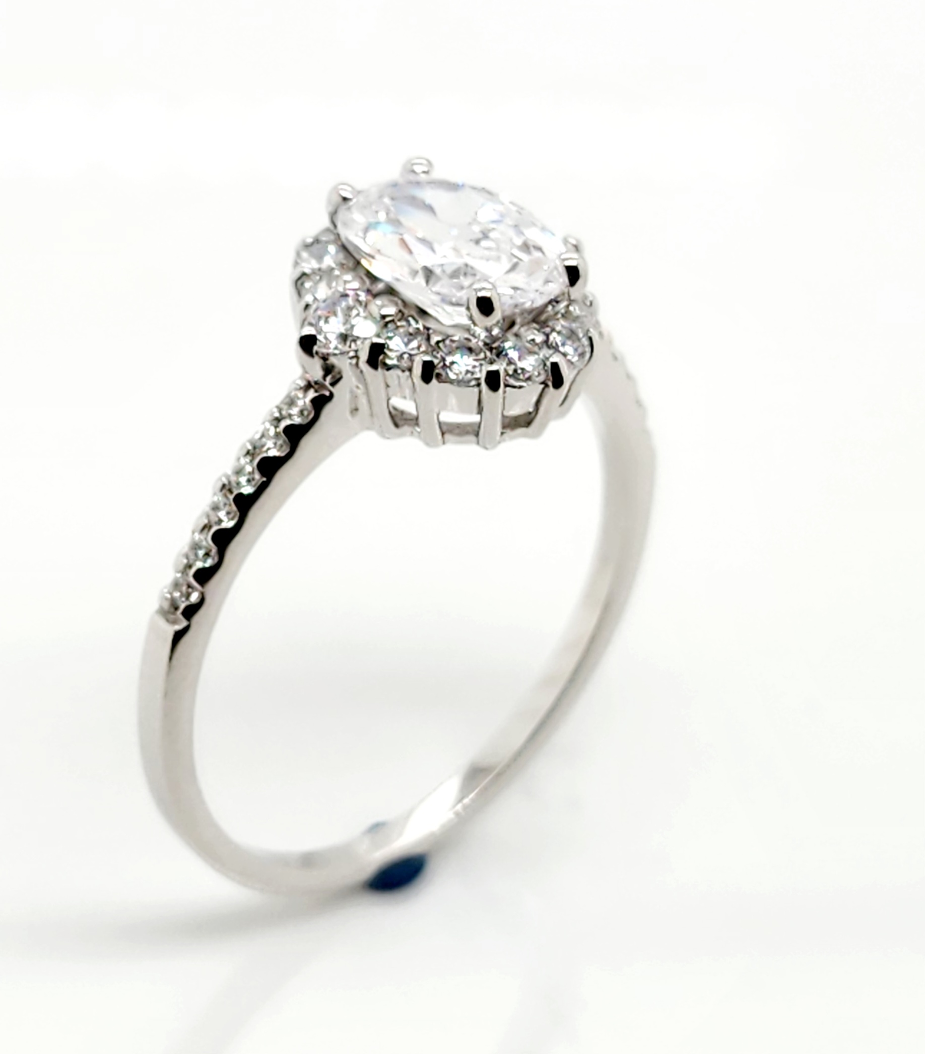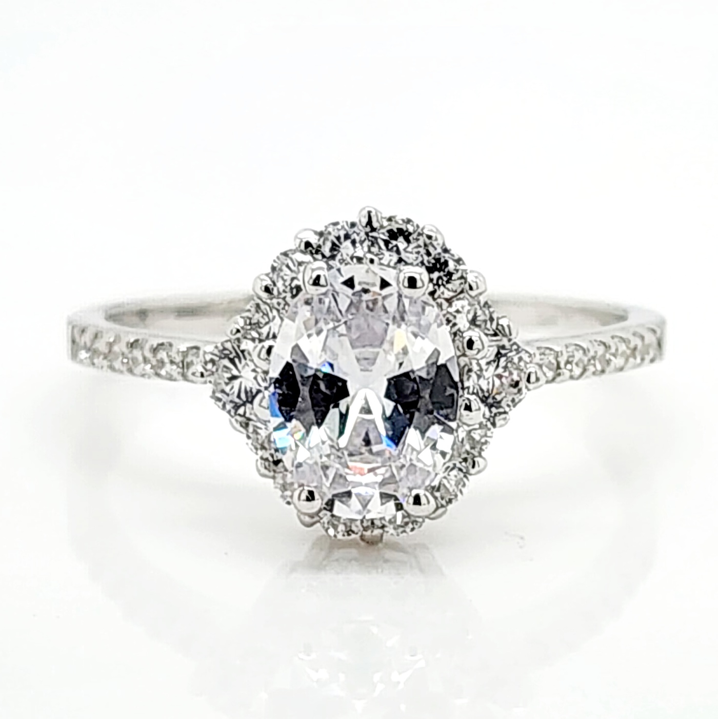 Sterling Silver Ladies Oval Cut Halo Cublic Zirconia Engagement Ring