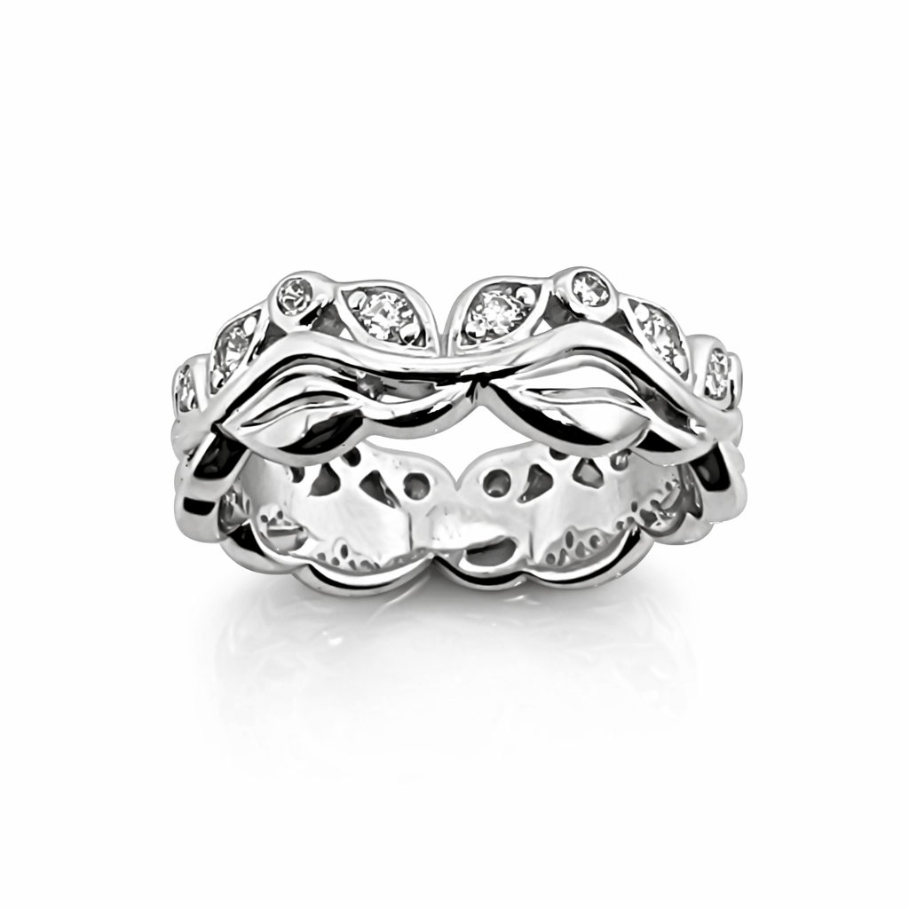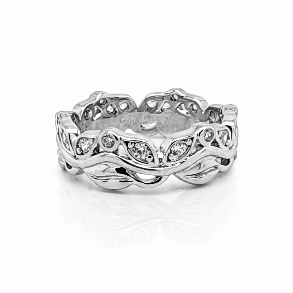 Its continuous vine pattern gives the ring a soft, flowing aesthetic, making it comfortable to wear while offering sparkle from every angle.