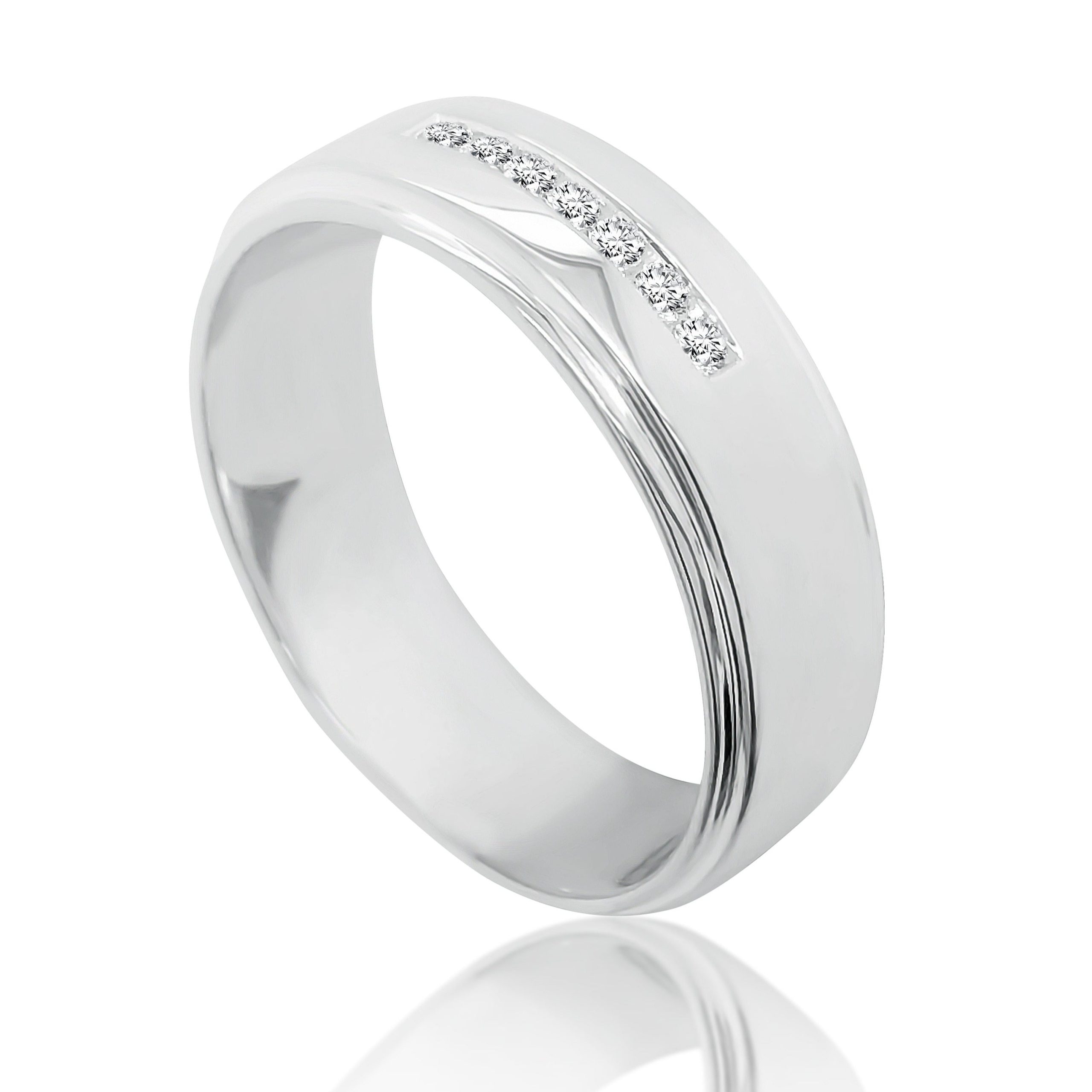 Sterling Silver Men’s Channel Setting Cubic Zirconia 7mm Wide Wedding Band Ring
