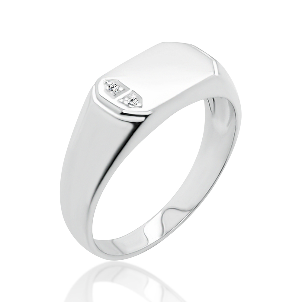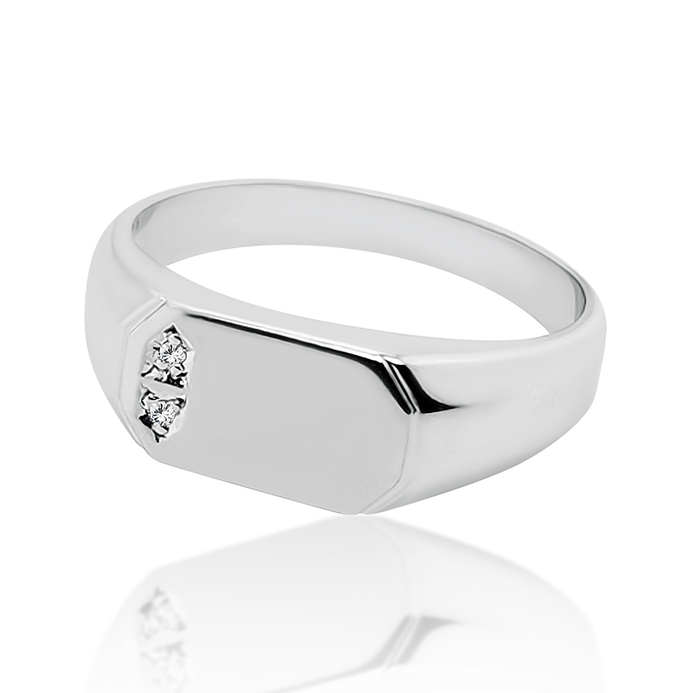 Sterling Silver Mens Wedding / Signet Ring with Cubic Zirconia Setting