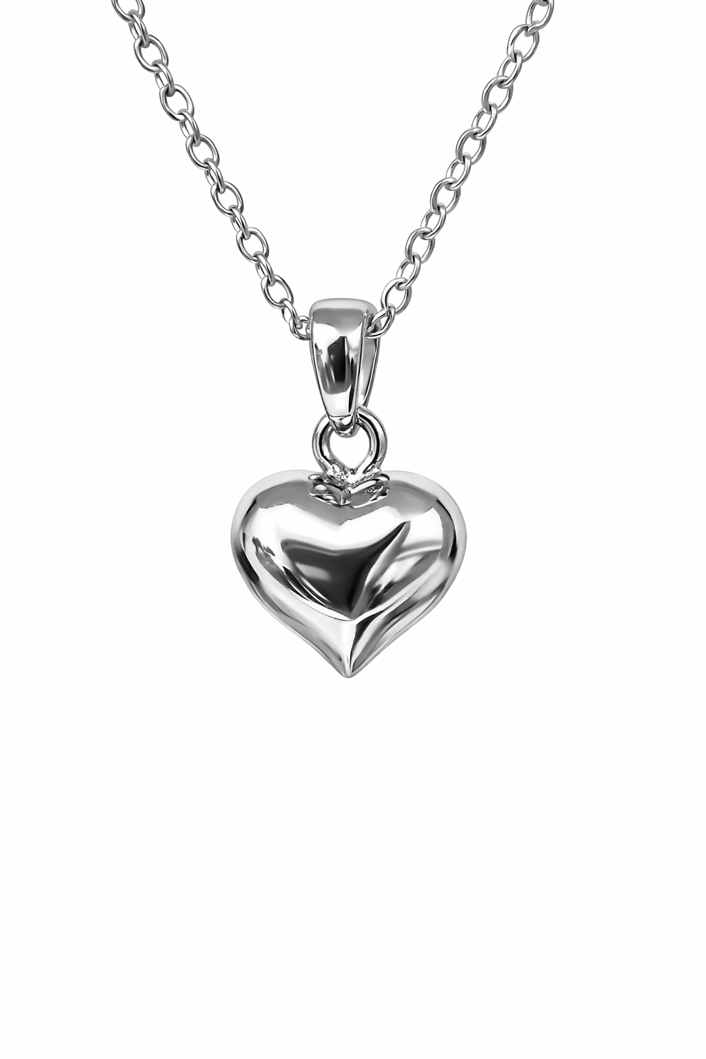 Suspended from a fine sterling silver cable link chain, this pendant sits delicately on the neckline and offers multiple length options for the perfect fit. Whether as a meaningful gift or a personal keepsake, this puff heart pendant is a timeless addition to any jewellery collection.