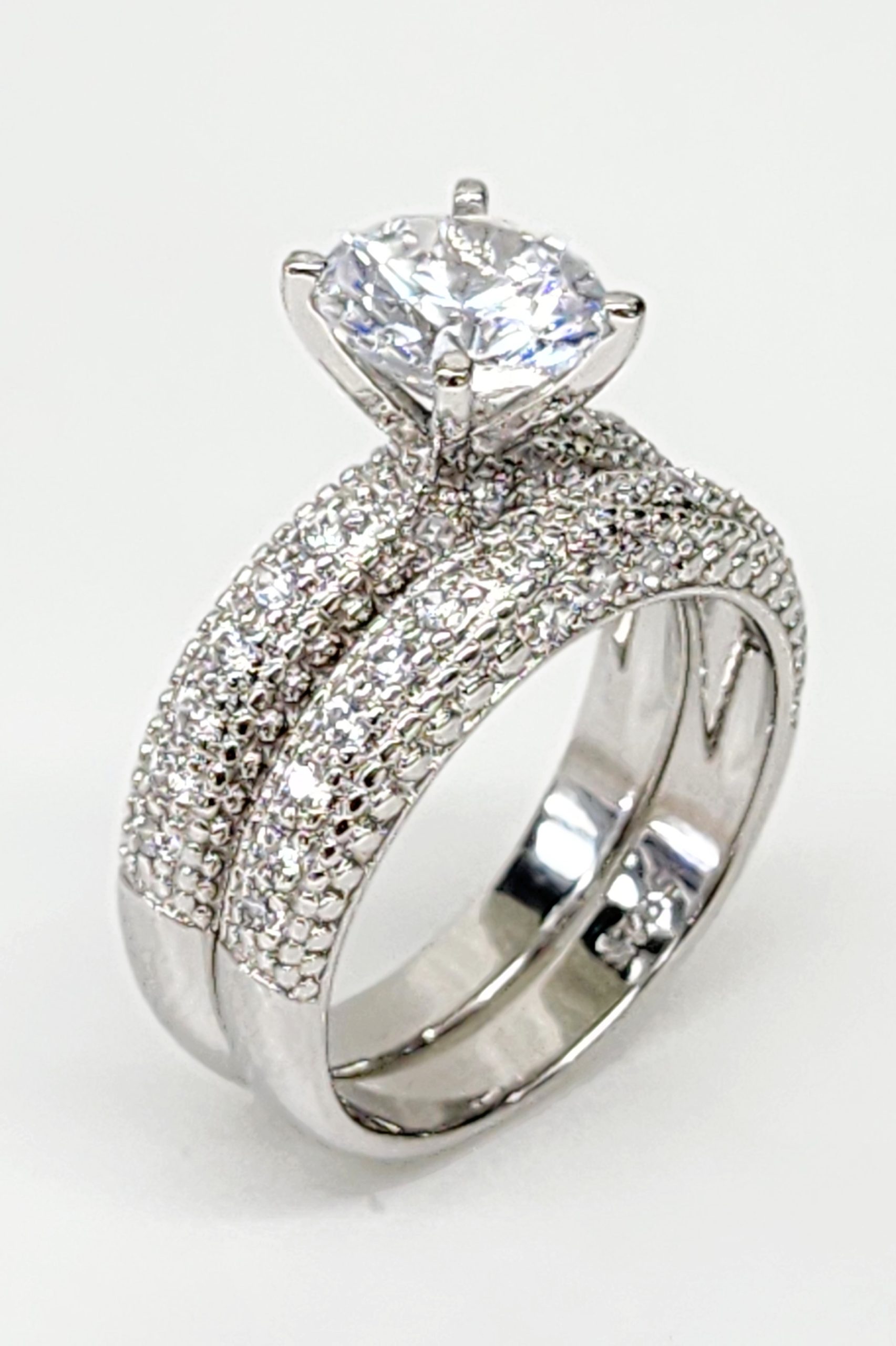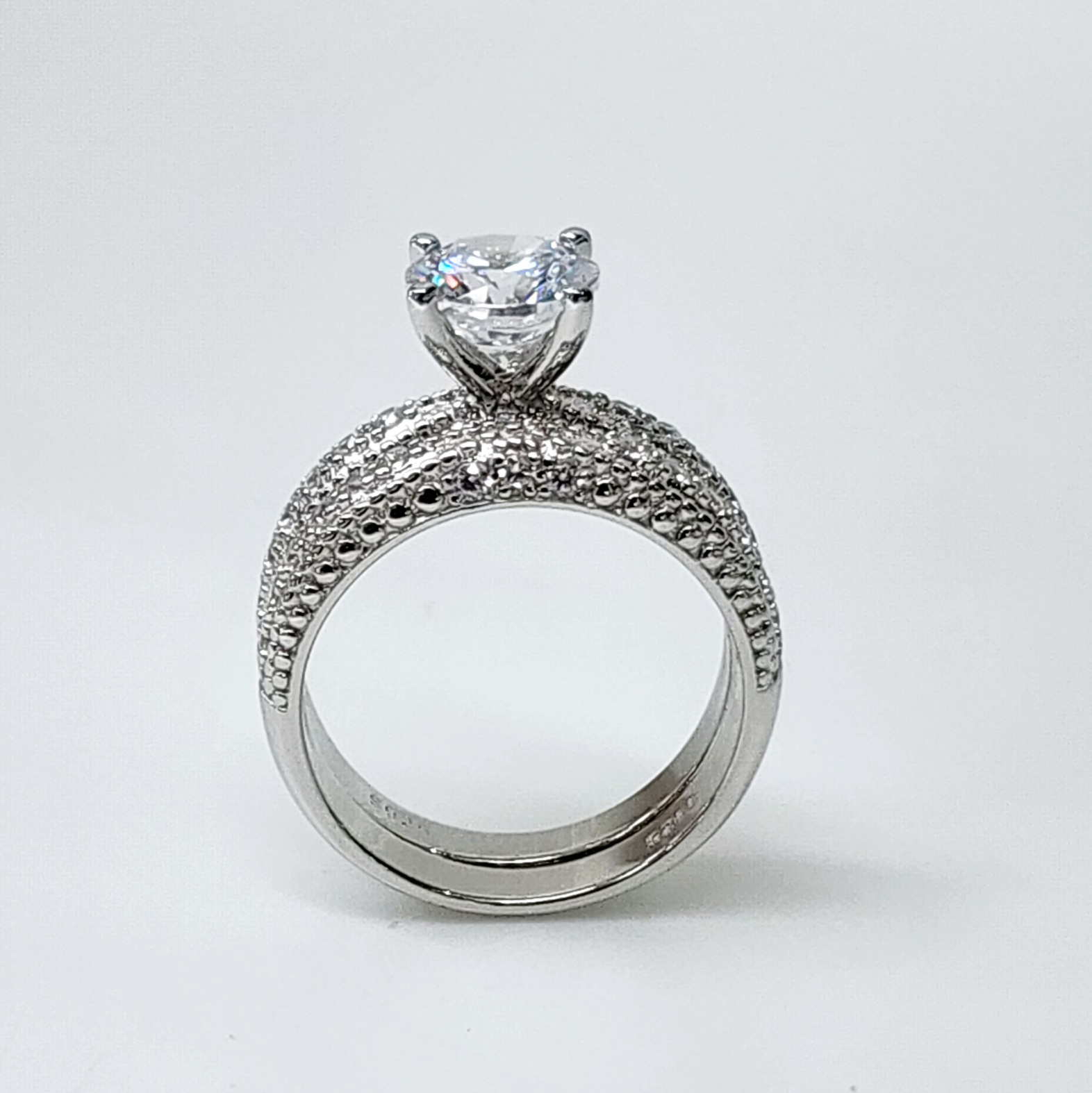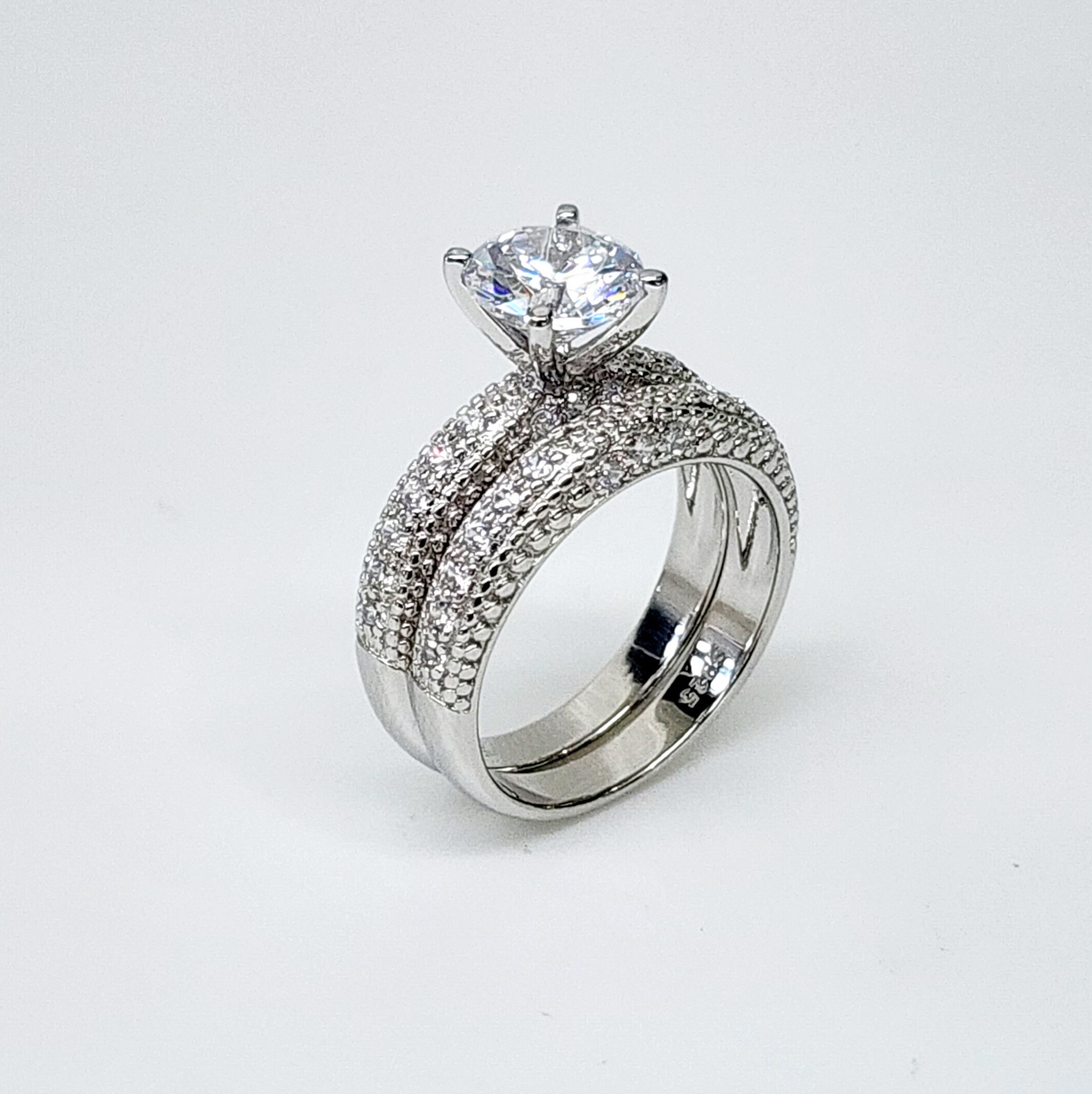Sterling Silver Round Cut Solitaire Bridal Wedding Set with Matching Micro Pave Wedding Band