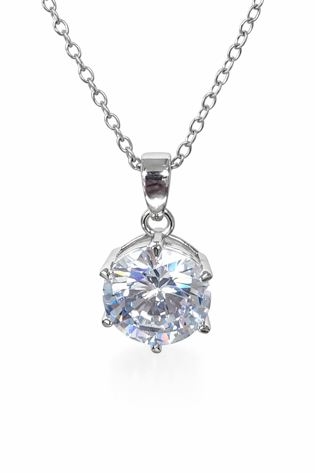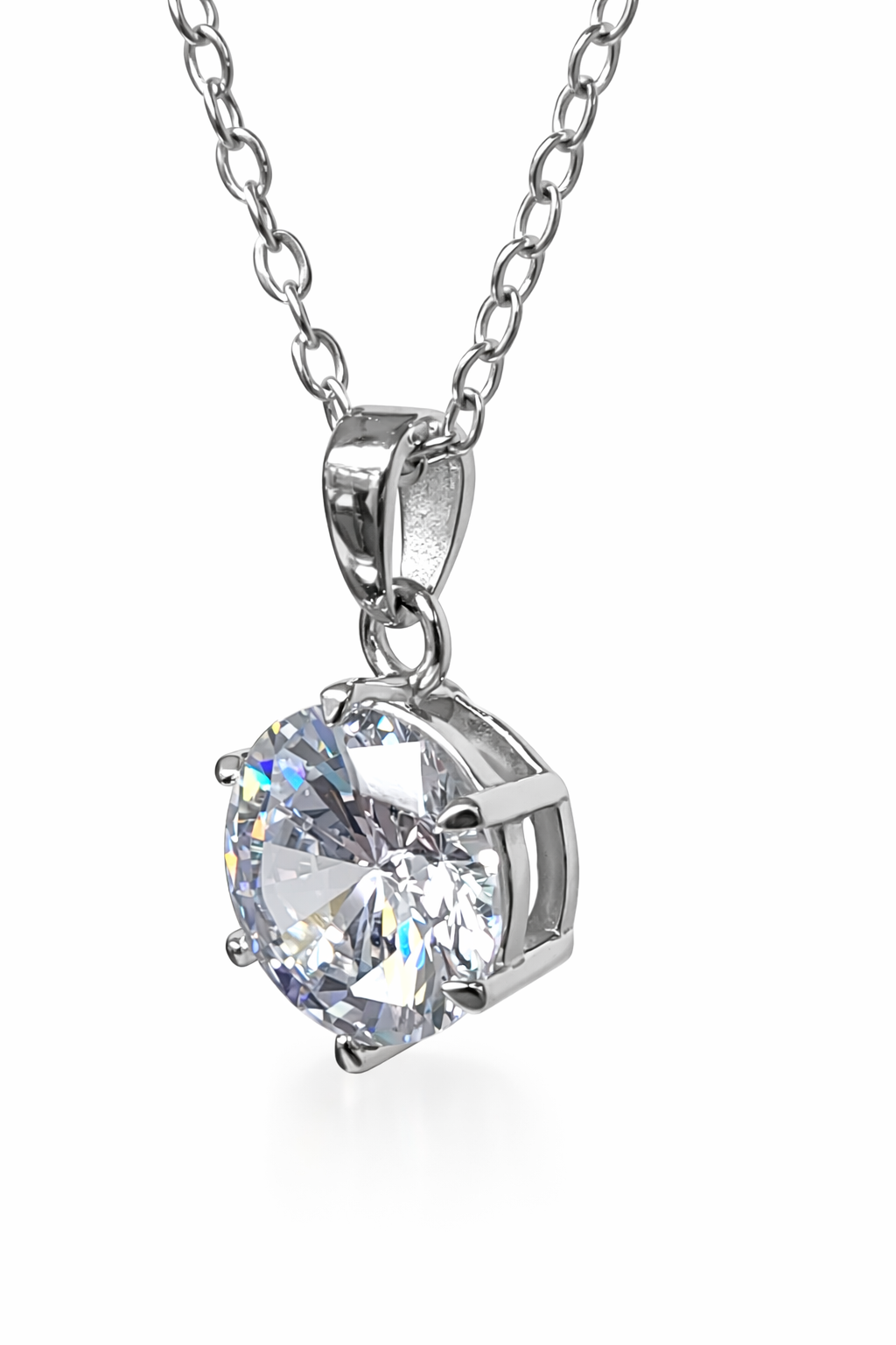 Timeless, elegant, and effortlessly radiant, this sterling silver round CZ pendant is a must-have classic. Featuring a brilliant 8mm round-cut cubic zirconia, the stone is expertly secured in a six-claw setting designed to maximise light exposure and enhance its exceptional sparkle.