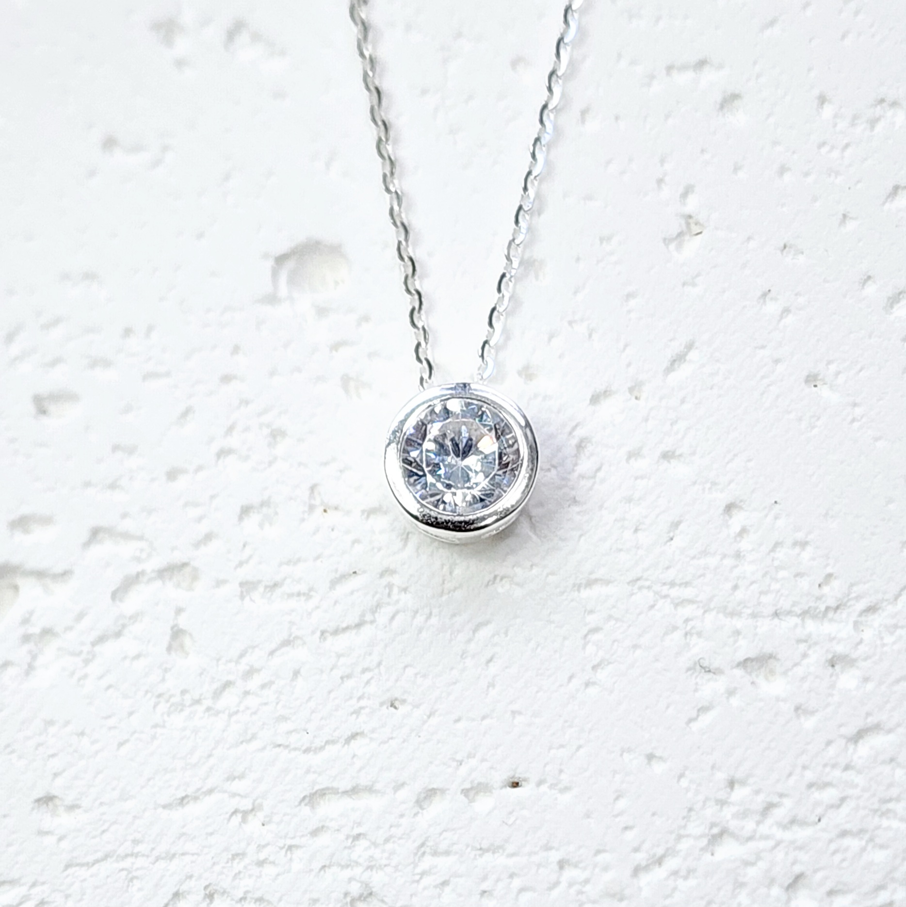 Sterling Silver Round Shape CZ Pendant with Sterling Silver Chain