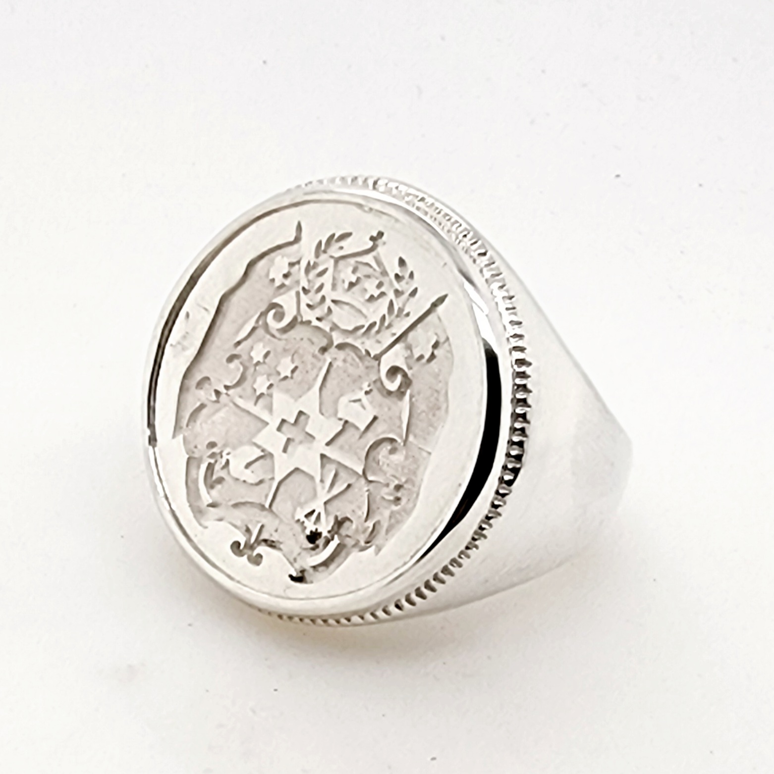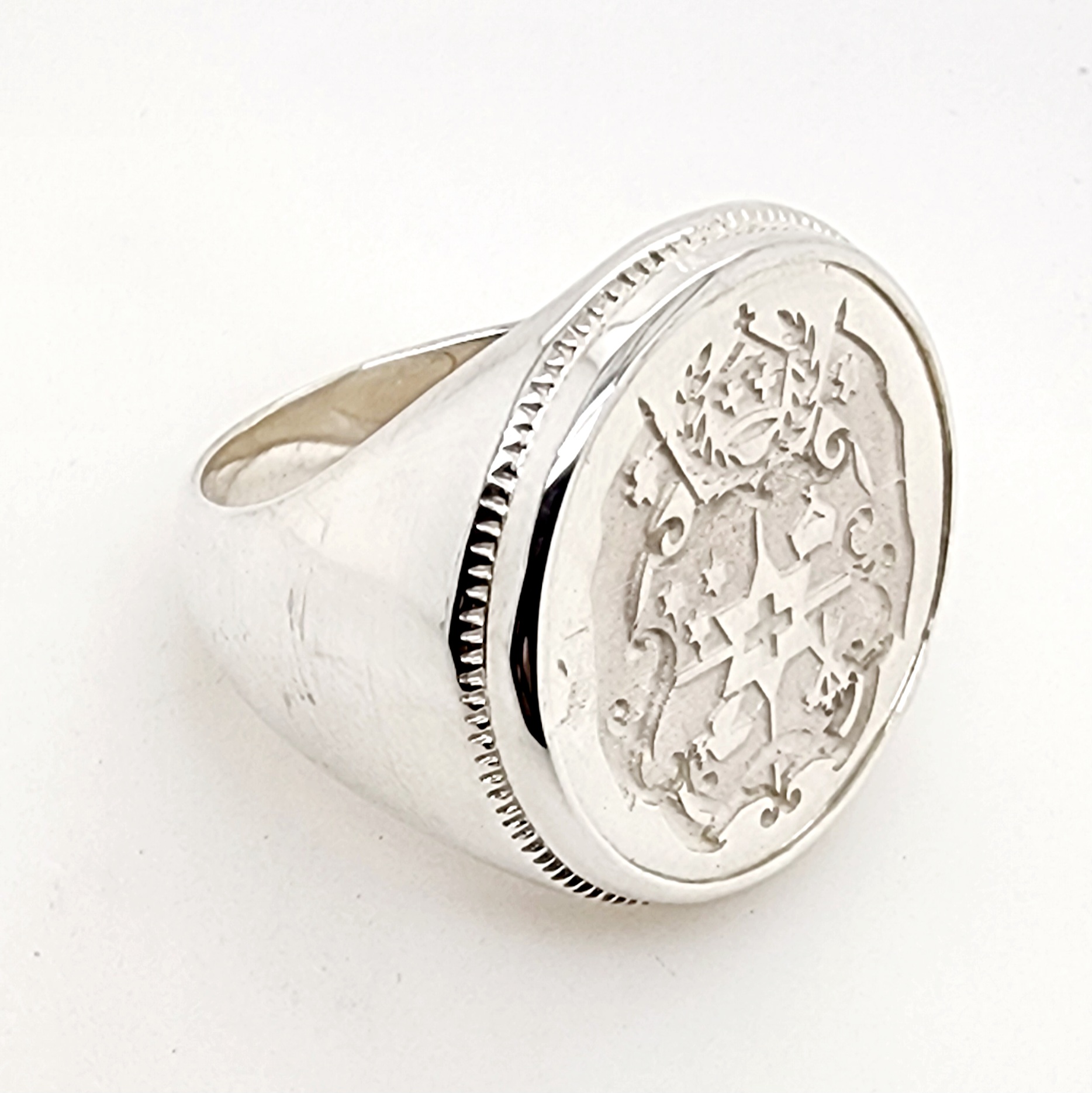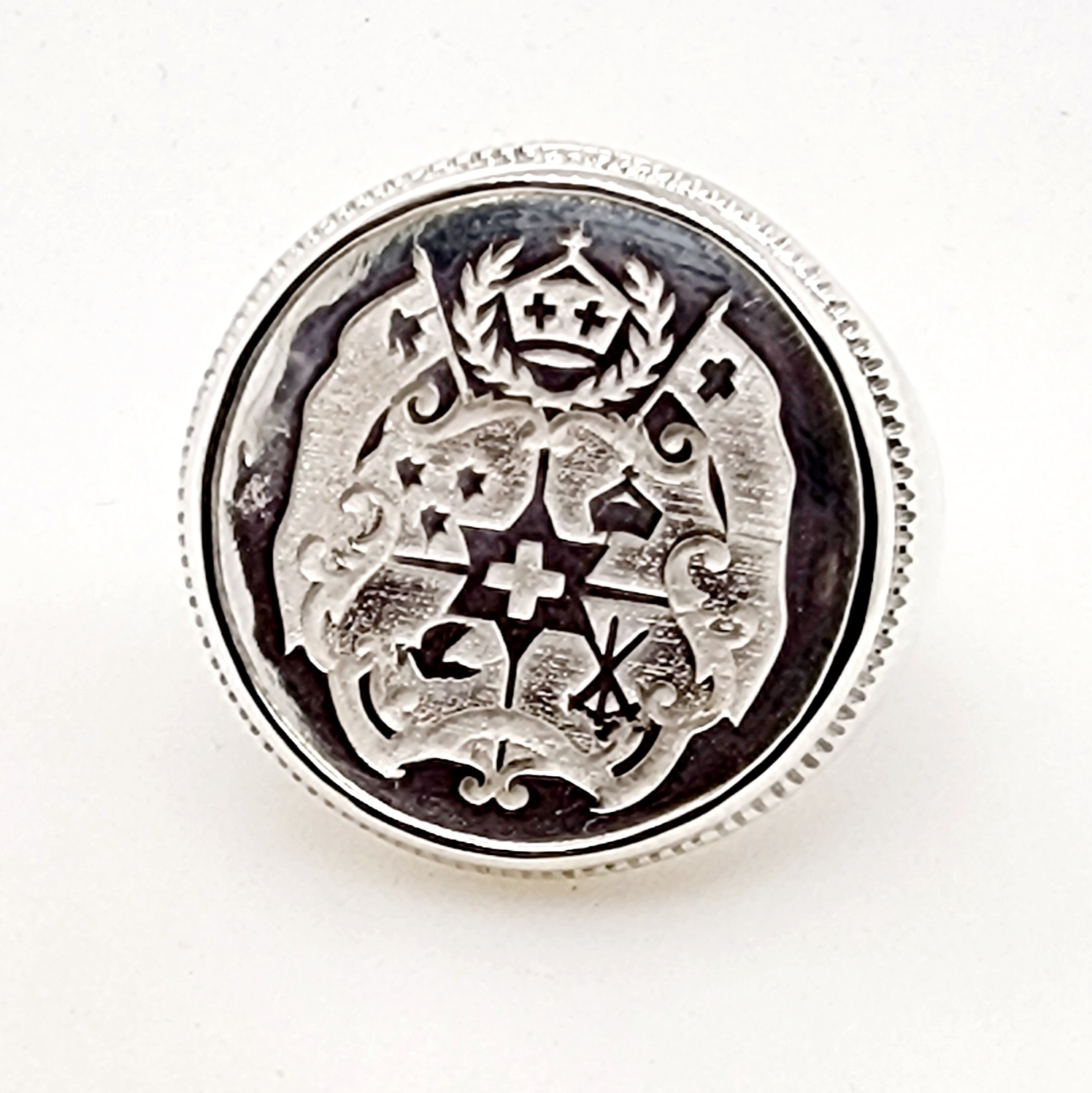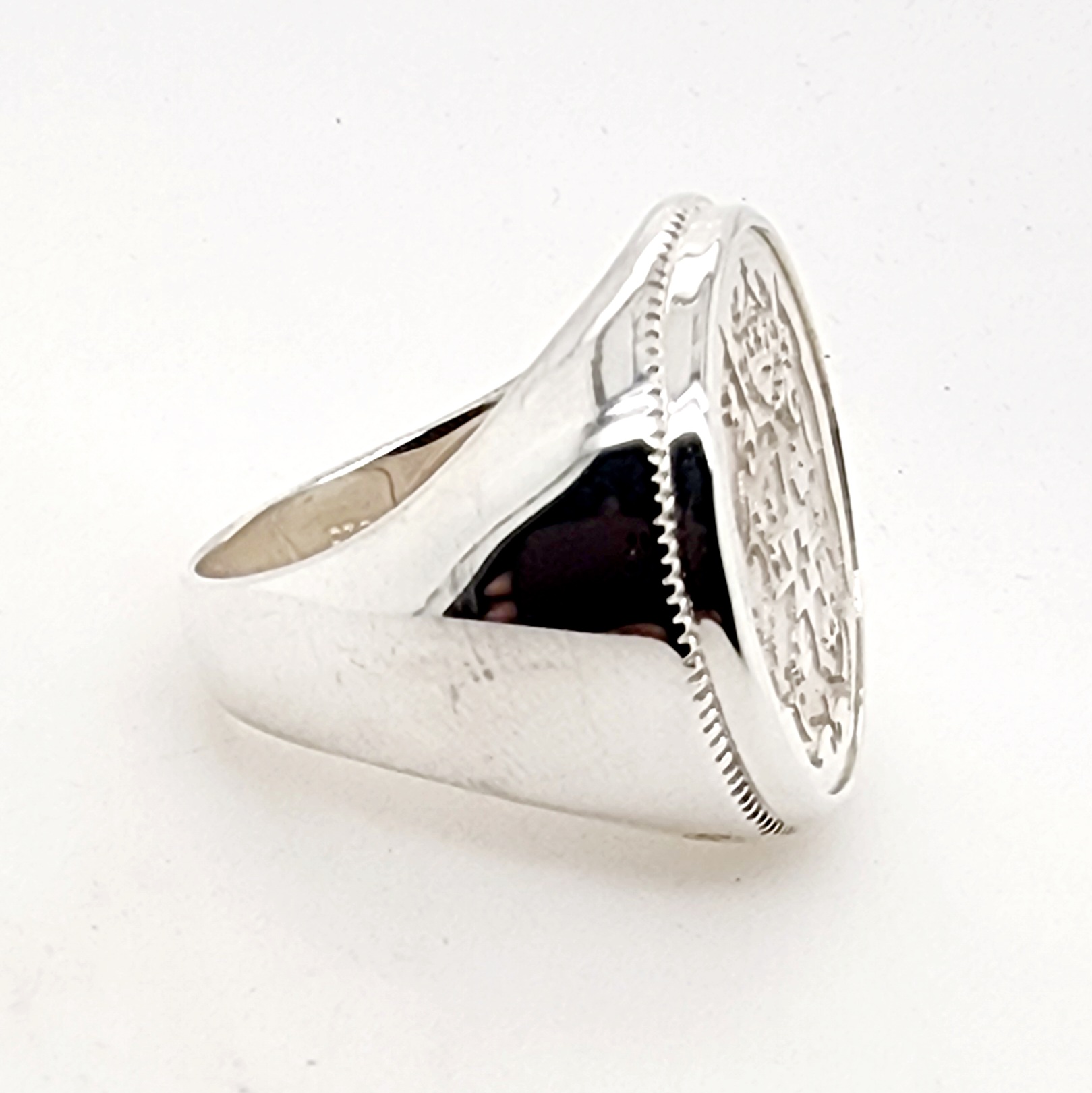 Sterling Silver Tongan Sila Coin Ring with Solid Ring Mount