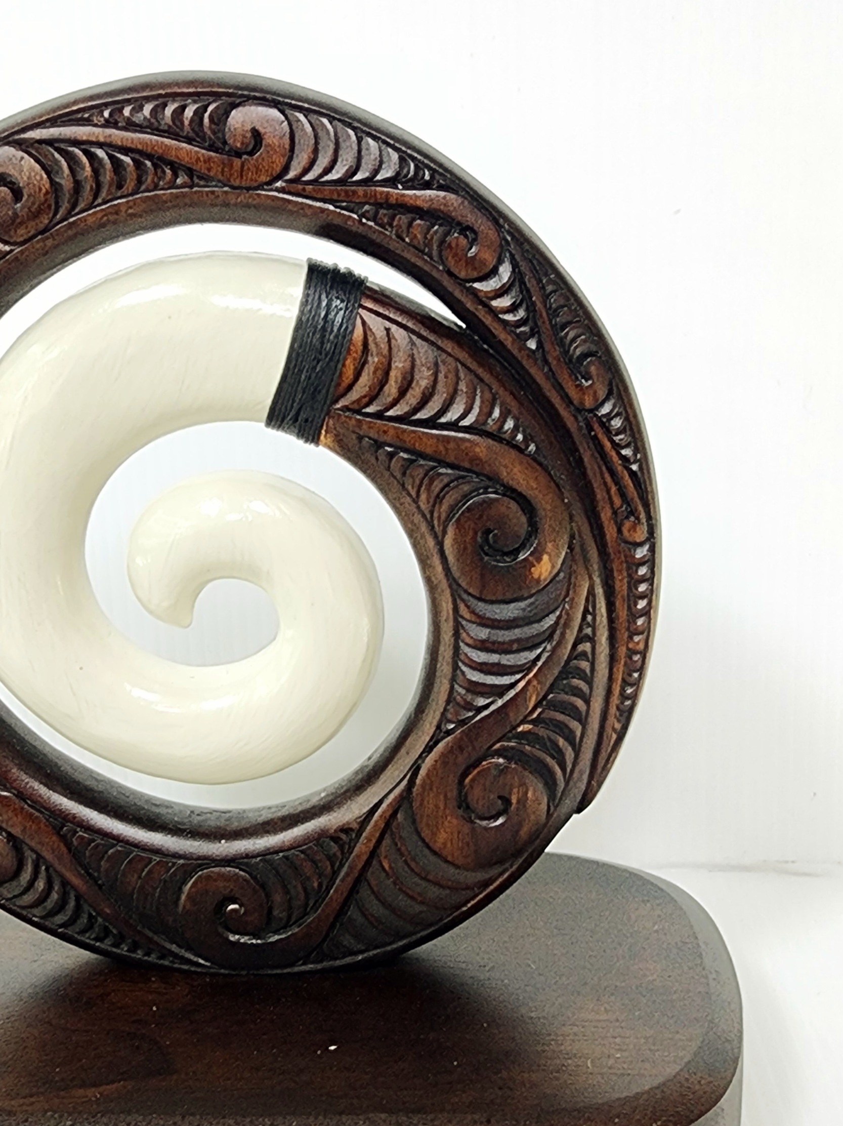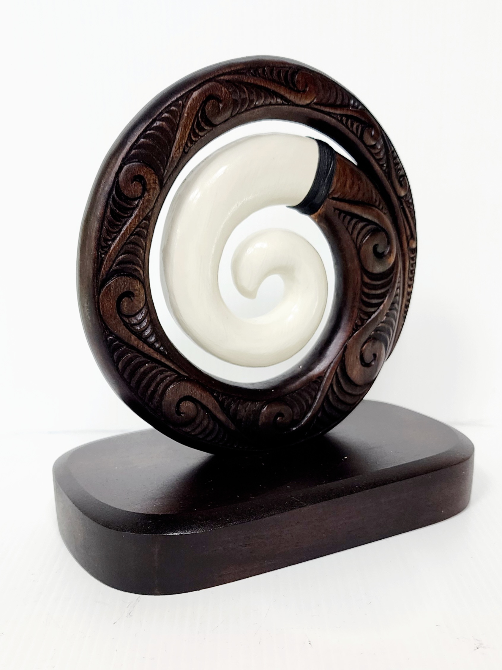Wooden Carved Koru with White Resin on Base 175mm High